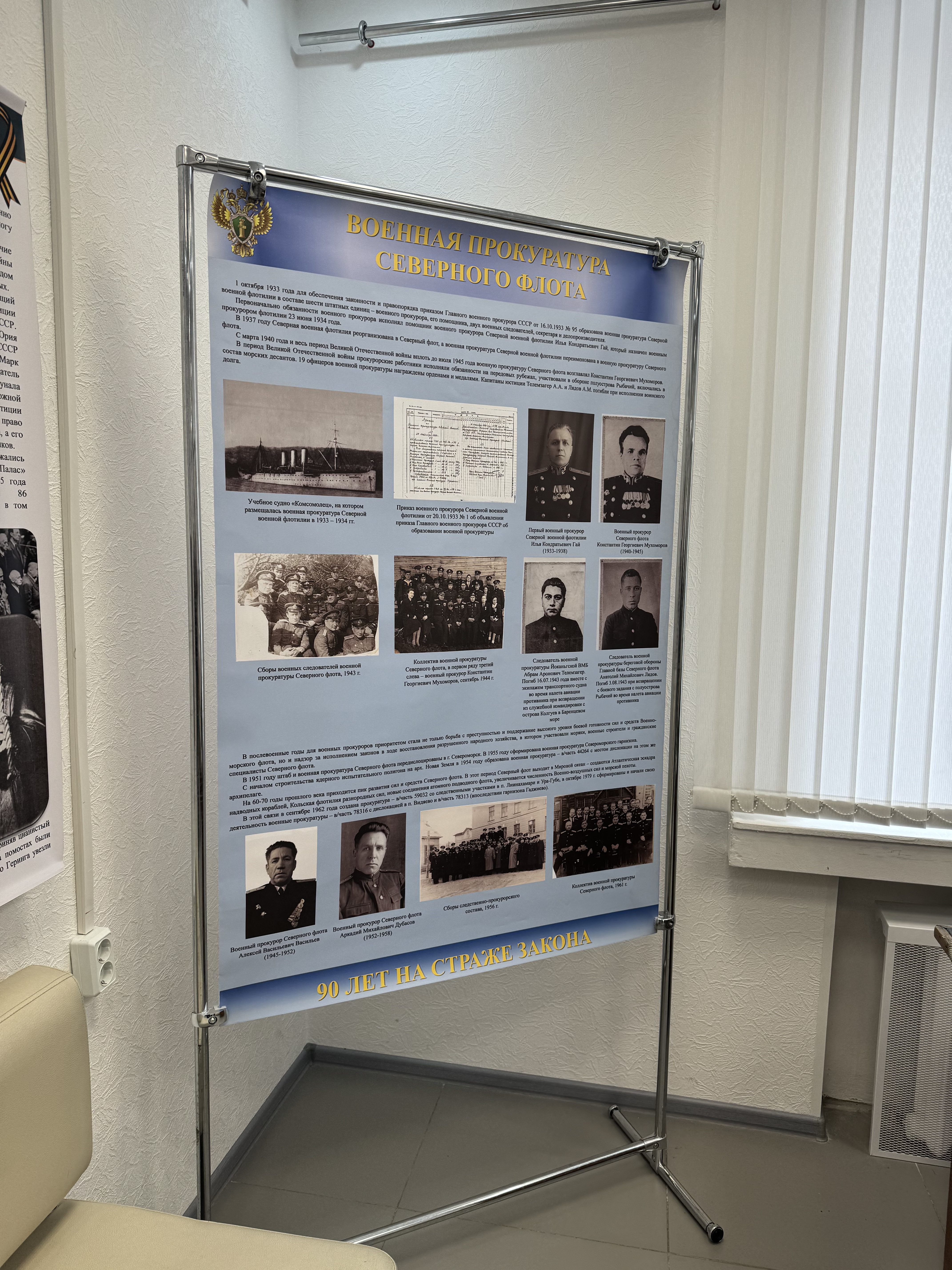 К 80-летию Победы в Великой Отечественной войне в Североморском музейно-выставочном комплексе начала работу выставка, организованная военной прокуратурой Северного флота совместно с прокуратурой Мурманской области. Историко-документальная выставка рассказывает посетителям о работе прокуроров в годы Великой Отечественной войны и в послевоенный период.