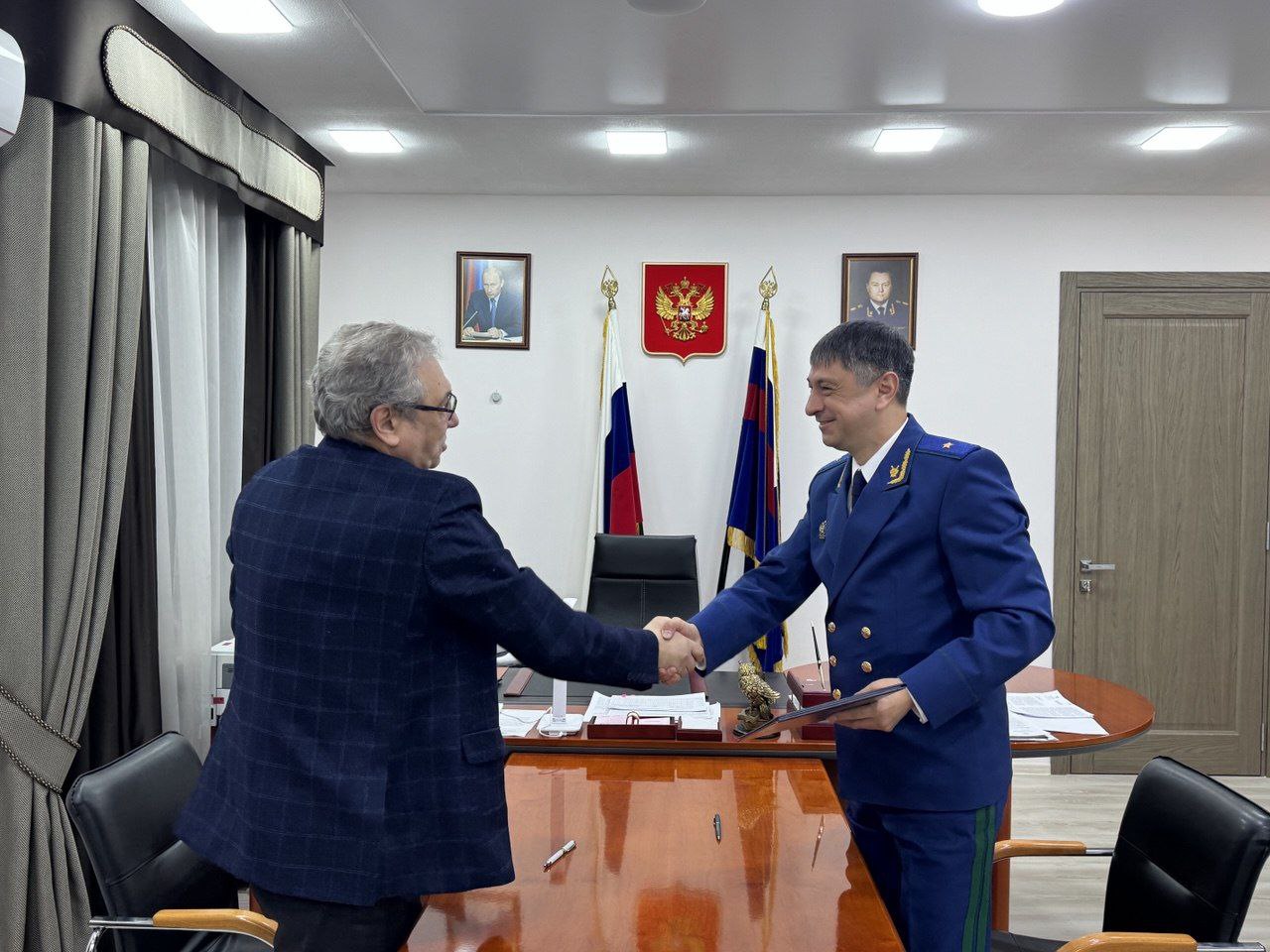 Сегодня в региональной прокуратуре подписано актуализированное Соглашение о взаимодействии по вопросам защиты прав предпринимателей между прокурором Мурманской области Сергеем Паволиным и старшим вице-президента Союза «Торгово-промышленной палаты Мурманской области» Андреем Ильиным.
