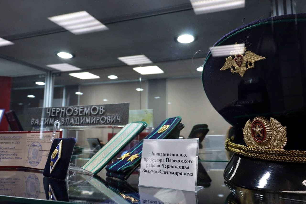 В рамках подготовки к юбилейным мероприятиям прокуратура области совместно с историко-краеведческим музеем Печенгского округа в течение шести месяцев организовала открытие выставки «Око государево». Экспозиция охватывает советский и российский этап становления и развития надзорного органа на Печенгской земле, уделяя особое внимание прокурорам, участвовавшим в Великой Отечественной войне, отстаивавшим правопорядок в послевоенные года и в период становления молодого Российского государства. Один из них, ветеран органов прокуратуры Федор Алексеевич Алатырцев, 33 года посвятил служению Закону и людям, работал следователем, помощником, старшим помощником прокурора района, прокурором Печенгского района Мурманской области. Федор Алексеевич поделился своими воспоминаниями о службе и пожелал молодым работникам честного служения Закону.