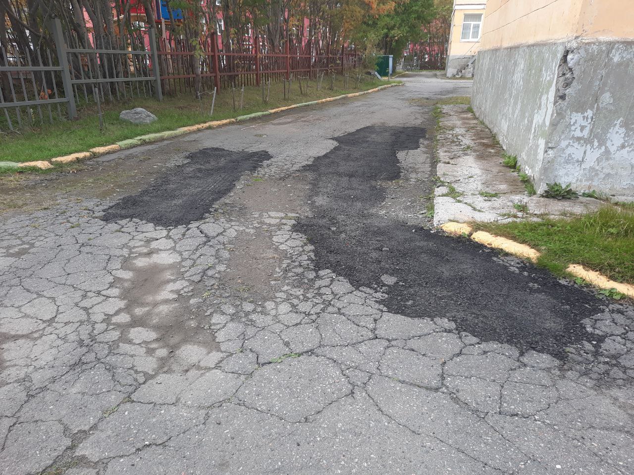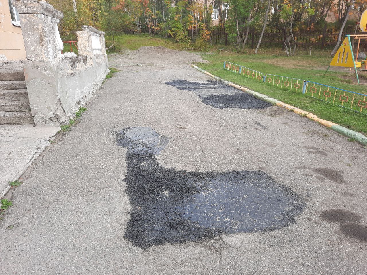 В ходе проверки установлено, что на территории МБДОУ № 5 г. Кировска покрытие проездов, подходов и дорожек имеет дефекты в виде выбоин и трещин.