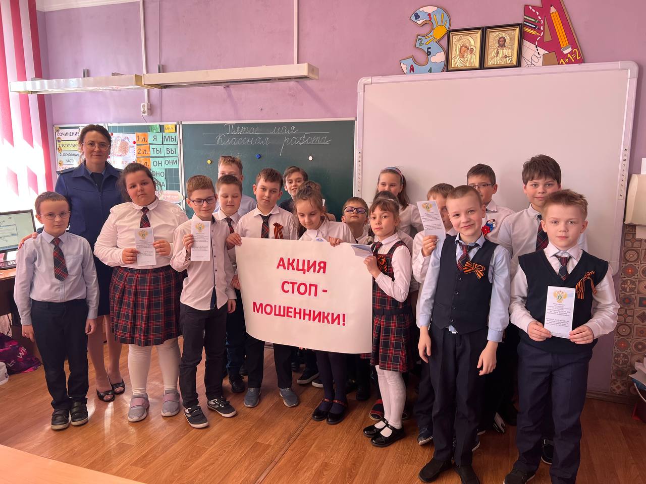 05.05.2023 прокуратурой Ленинского административного округа г. Мурманска в целях привлечения внимания к участившимся преступлениям, совершаемым с использованием сети Интернет, проведена акция «Стоп-мошенники», с участием представителей и учеников МБОУ г. Мурманска «Прогимназия 61».