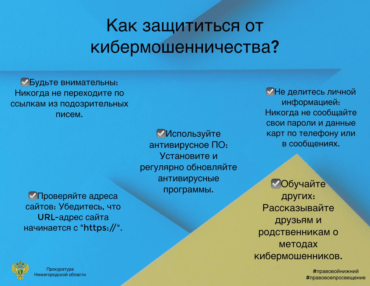 Прокуратура Нижегородской области рассказывает, что такое кибермошенничество и как защитить себя от него.