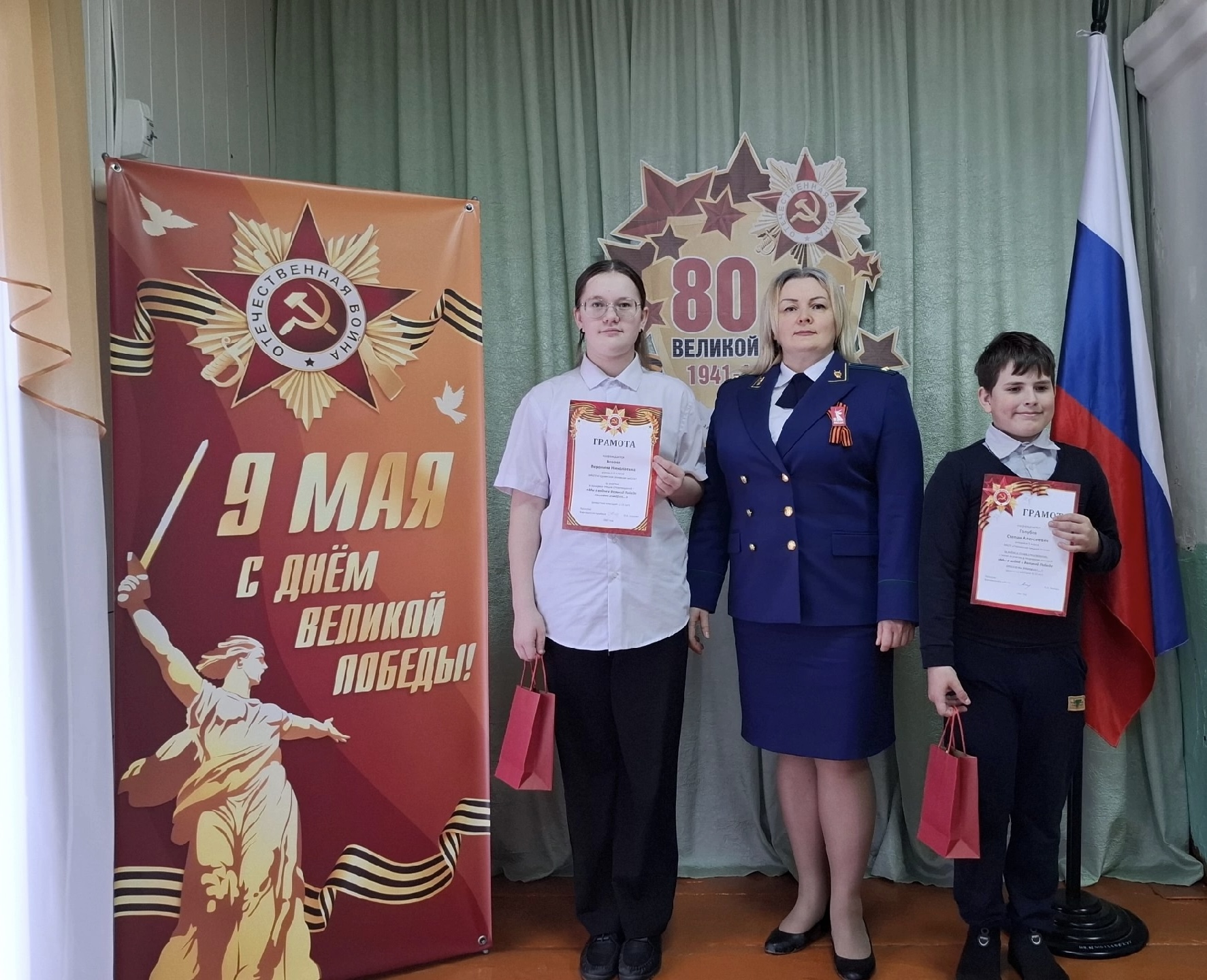 Прокуроры навещали учащихся образовательных учреждений, воспитанников подшефных организаций, проводили для них конкурсы рисунков, викторины, посвященные 80-й годовщине Победы в Великой Отечественной войне.