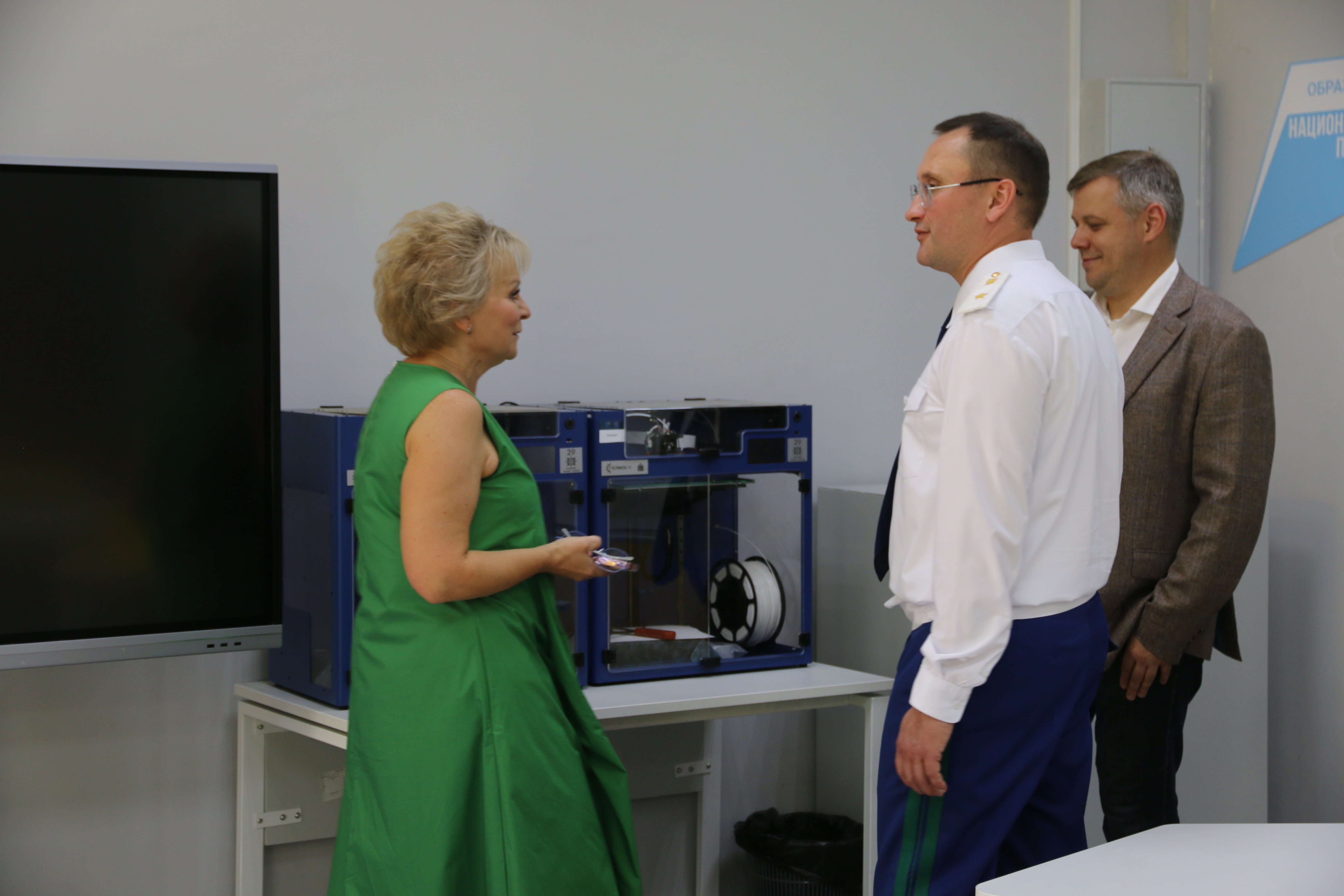 После торжественного мероприятия Андрей Травкин совместно с директором школы посетили учебные классы, проверили условия обучения, побеседовали с преподавательским составом. В школе, единственной в регионе, создан центр профилактики правонарушений на дорогах, действуют модернизированные классы для занятий трудом для девушек с оборудованной кухней, химией с интерактивным столом Пирогова, который позволяет в 3D-формате изучать строение организма человека.