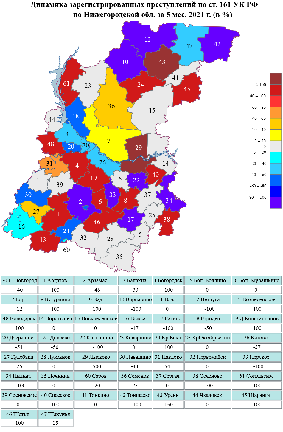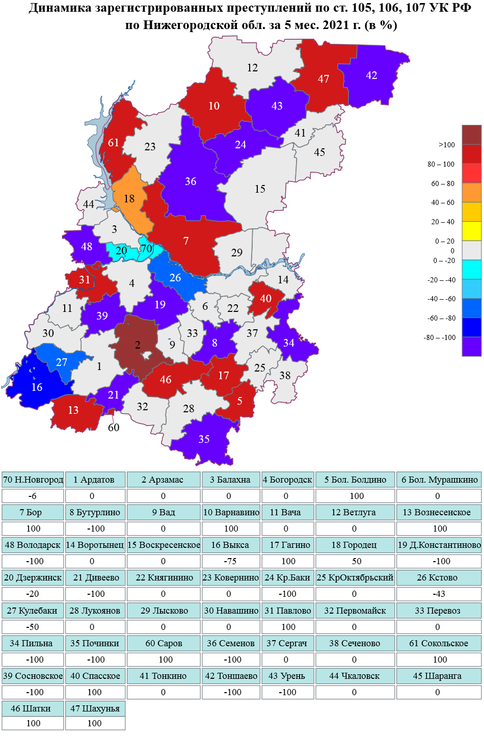Сведения о динамике зарегистрированной преступности на картах Нижегородской области и г.Н.Новгорода за январь-май 2021 г.