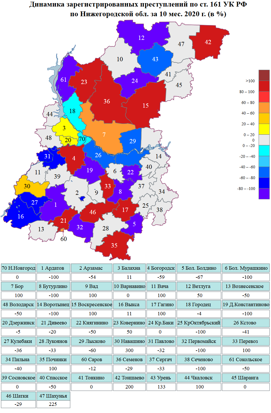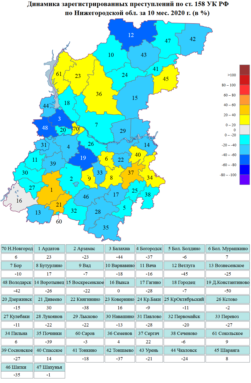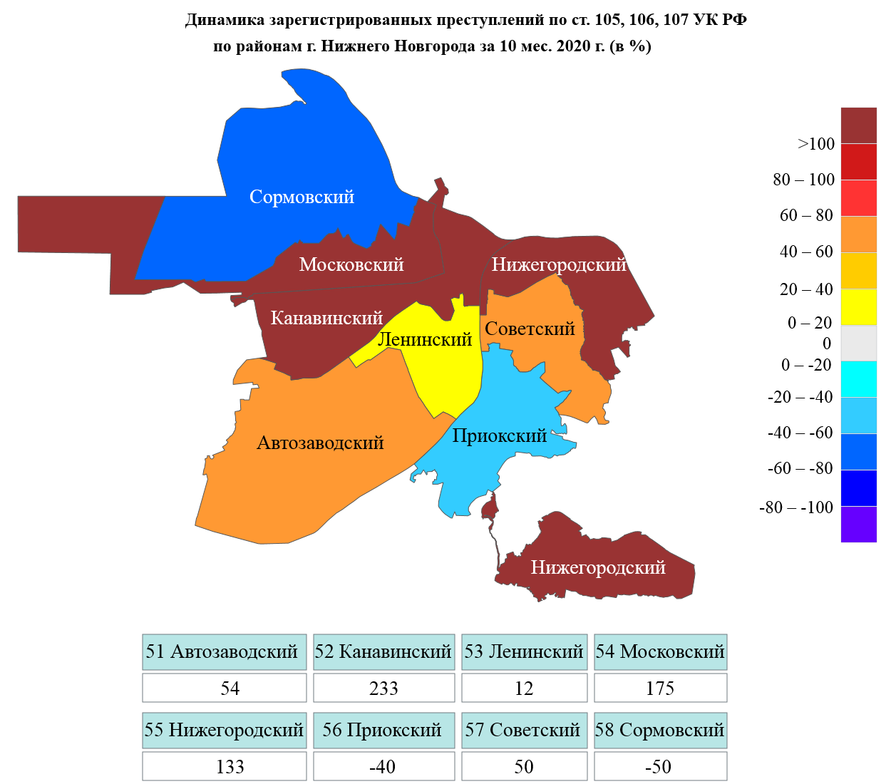 Сведения о динамике зарегистрированной преступности на картах Нижегородской области и г.Н.Новгорода за январь-октябрь 2020 г.
