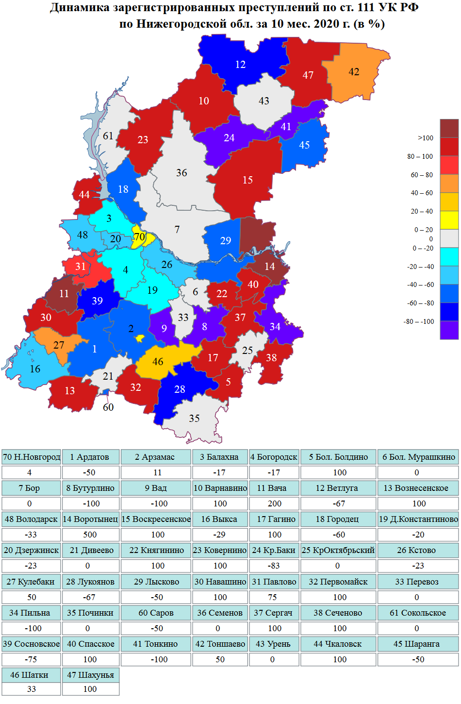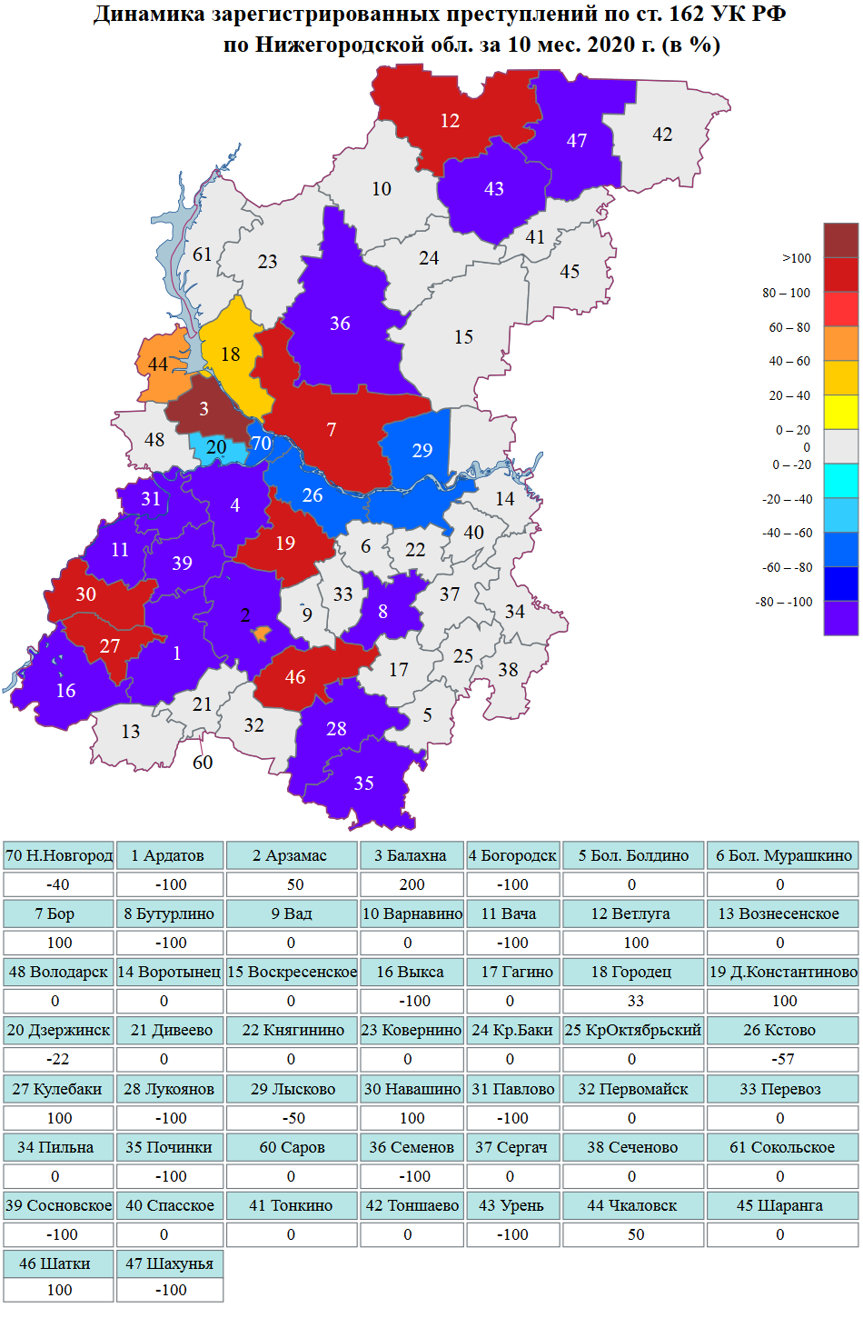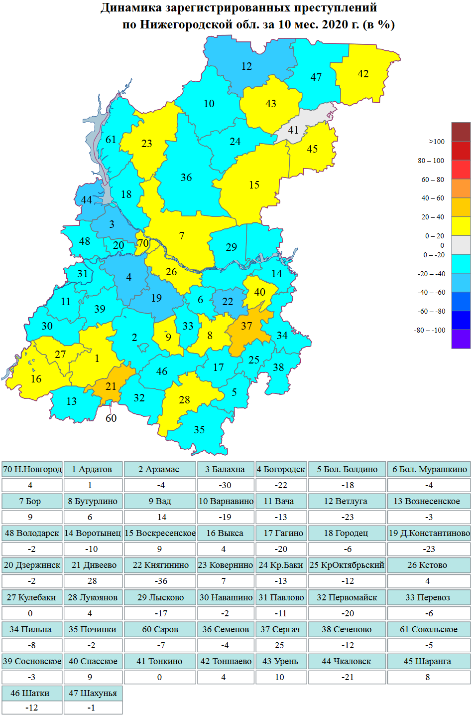 Сведения о динамике зарегистрированной преступности на картах Нижегородской области и г.Н.Новгорода за январь-октябрь 2020 г.