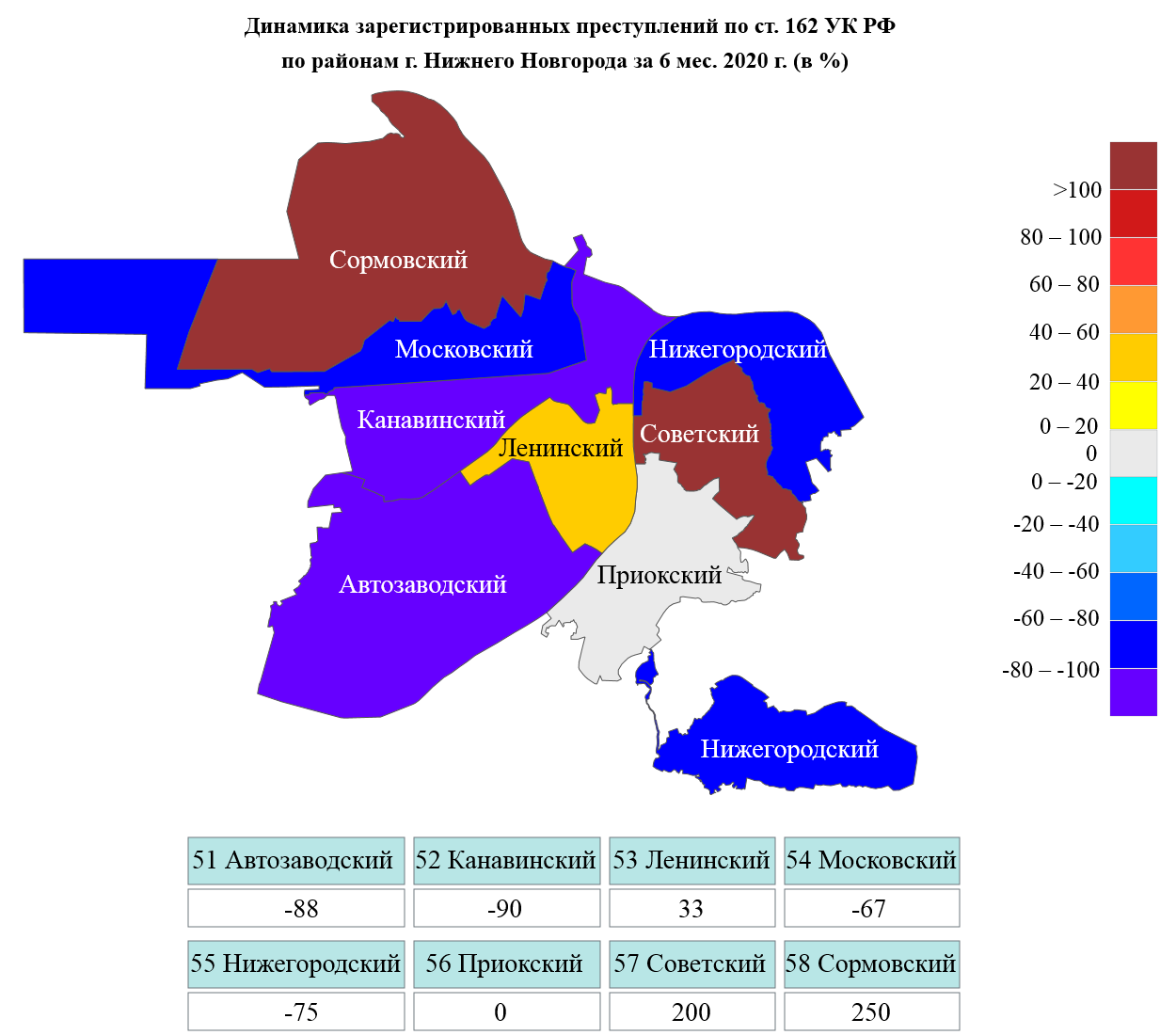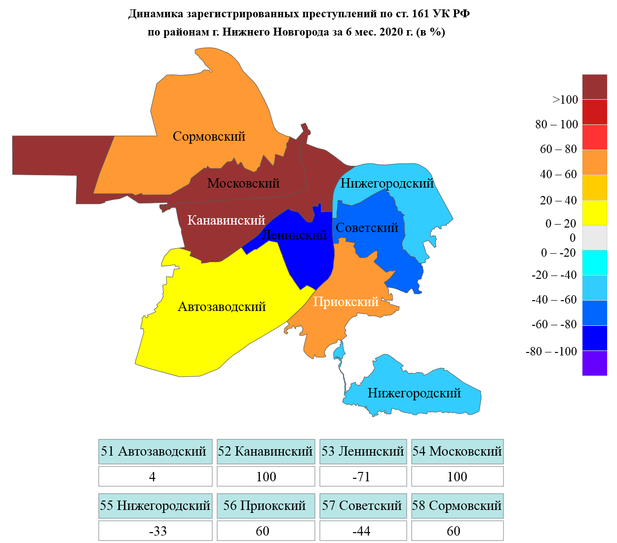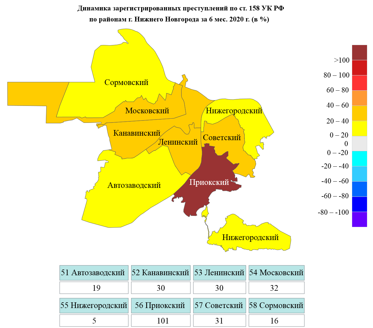 Сведения о динамике зарегистрированной преступности на картах Нижегородской области и г.Н.Новгорода за 1 полугодие 2020 г.