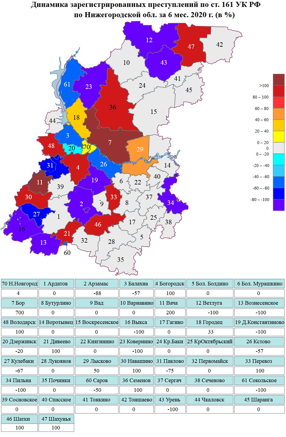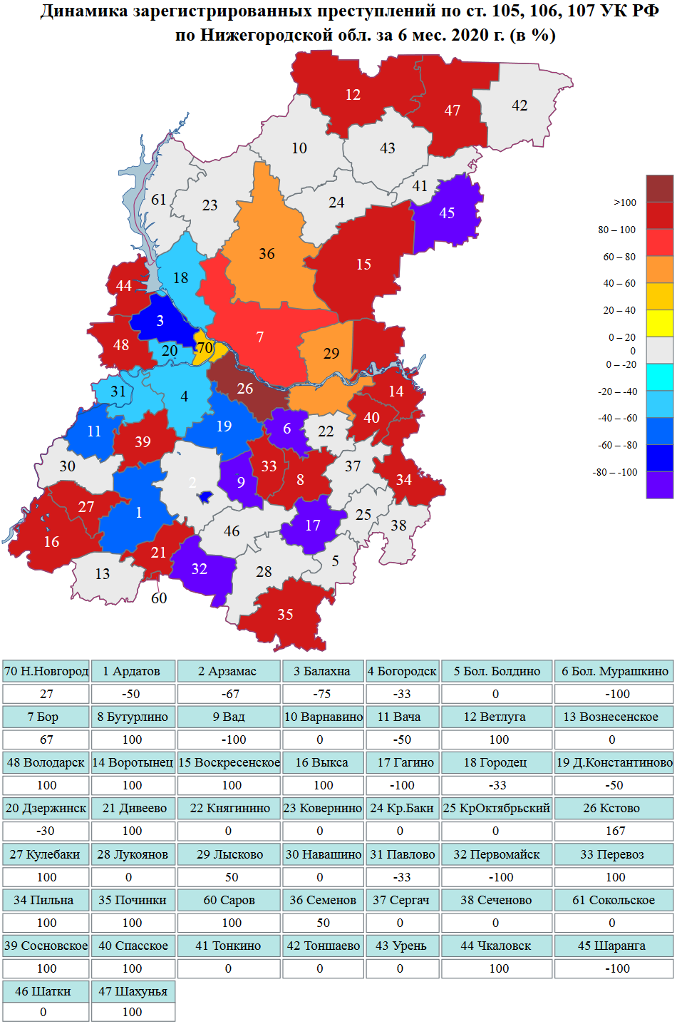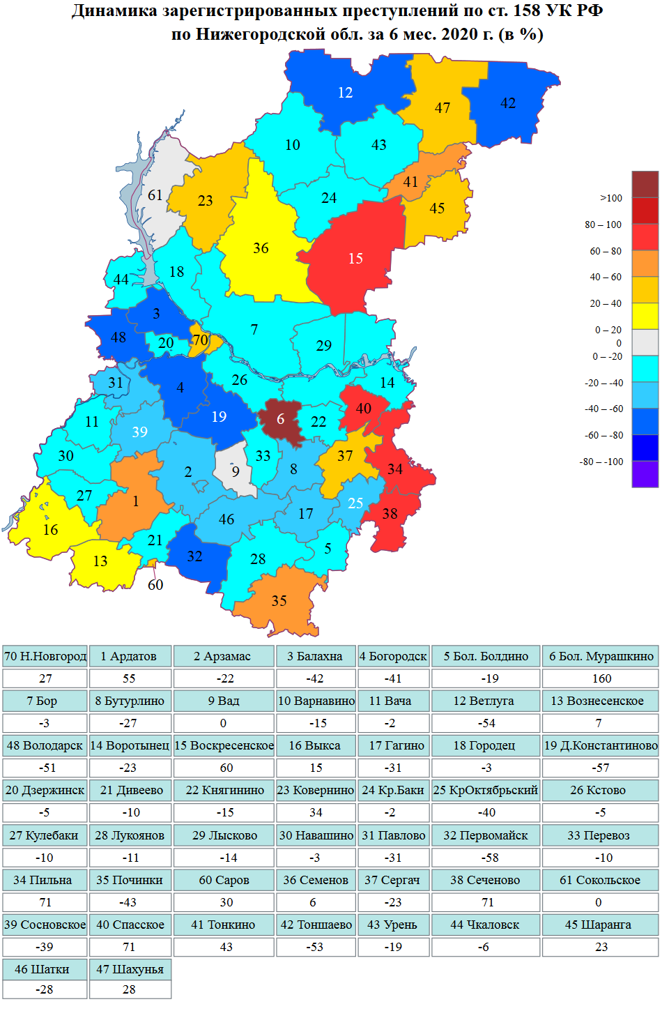 Сведения о динамике зарегистрированной преступности на картах Нижегородской области и г.Н.Новгорода за 1 полугодие 2020 г.