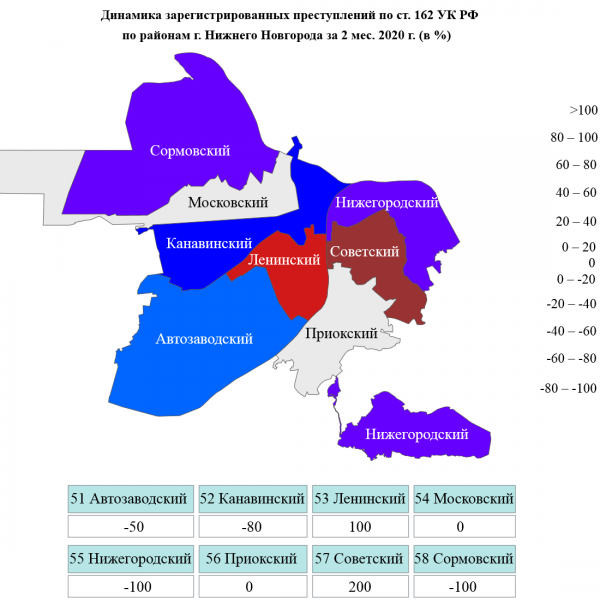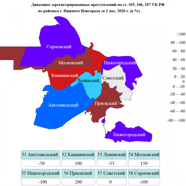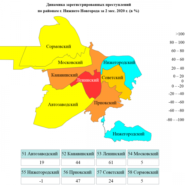 Сведения о динамике зарегистрированной преступности на картах Нижегородской области и г.Н.Новгорода за январь-февраль 2020 г.