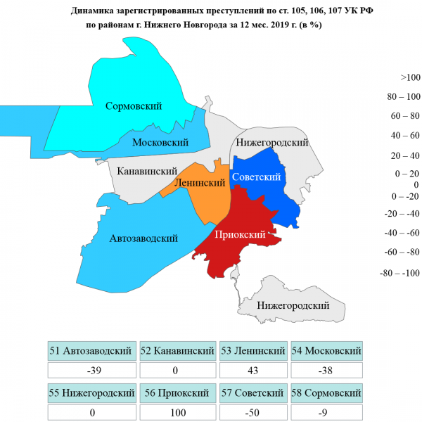 Сведения о динамике зарегистрированной преступности на картах Нижегородской области и г.Н.Новгорода за 2019 г.
