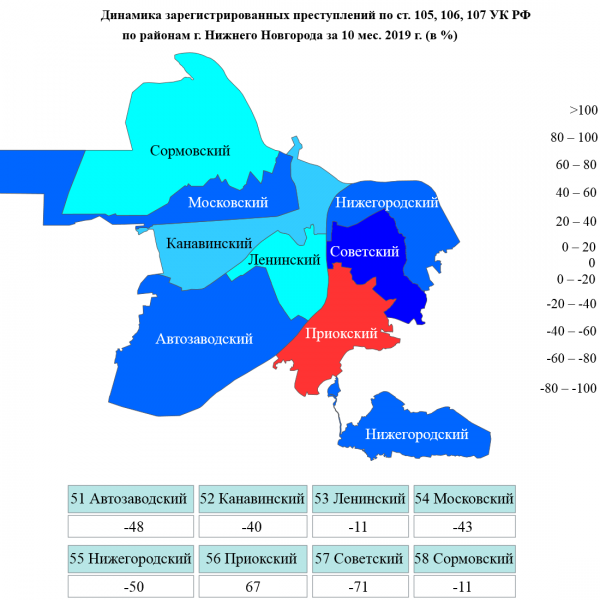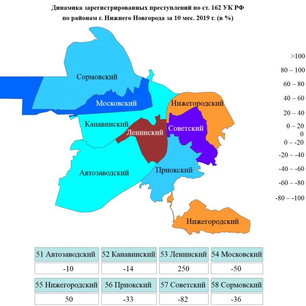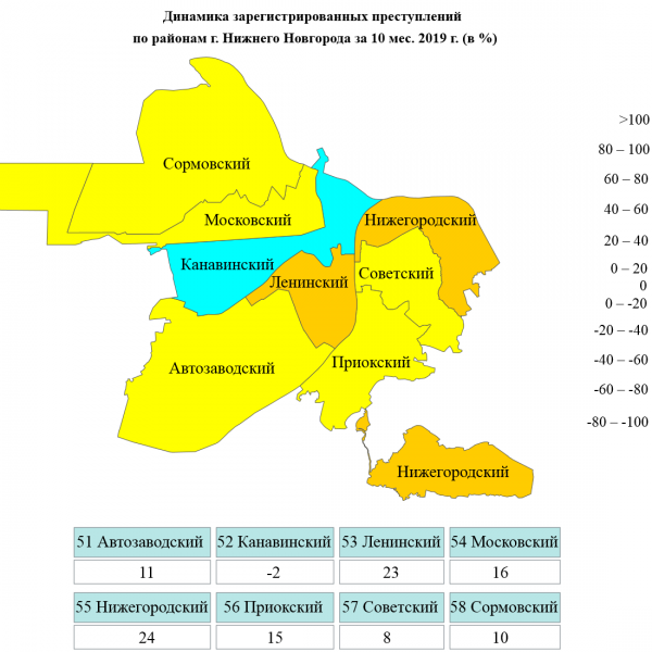 Сведения о динамике зарегистрированной преступности на картах Нижегородской области и г.Н.Новгорода за январь-октябрь 2019 г.