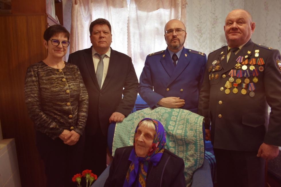 Прокурор Шимского района Константин Степанов совместно с главой района посетил 103-летнюю жительницу п. Шимск Надежду Павловну Иванову.