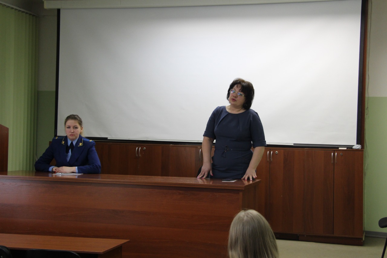Сегодня, 21 03.2021 старший прокурор отдела кадров Выступова Елена Алексеевна и пенсионер прокуратуры Горбачева Ольга Владимировна встретились со студентами Новосибирского юридического института (филиала) Томского государственного университета.