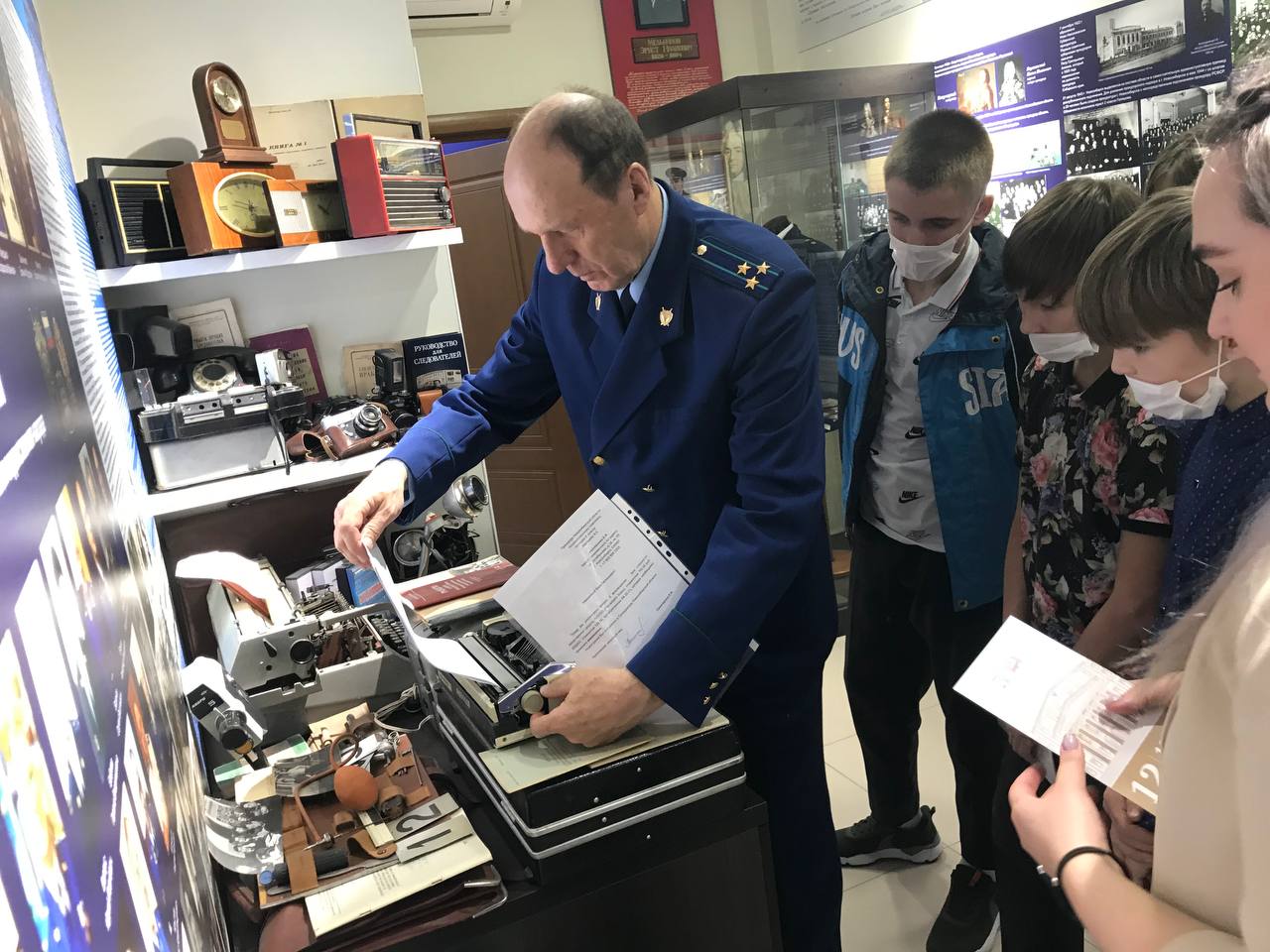 Прокуроры показали воспитанникам детского дома ведомственный музей. В ходе экскурсии показаны фотографии работников прокуратуры времен СССР, участников Великой Отечественной войны, современного периода, а также подлинные документы и предметы, имеющие отношение к деятельности прокуроров.