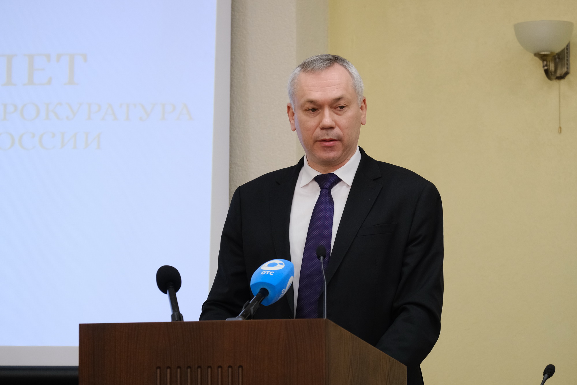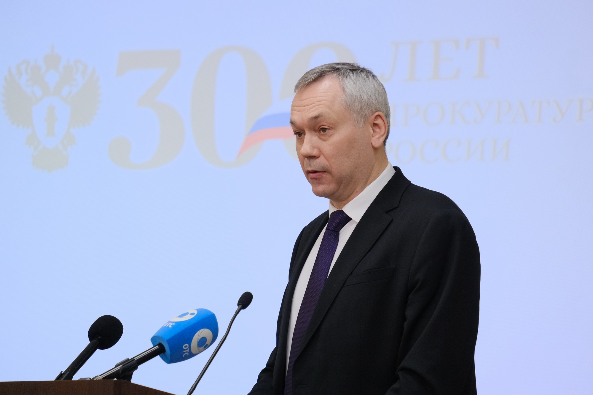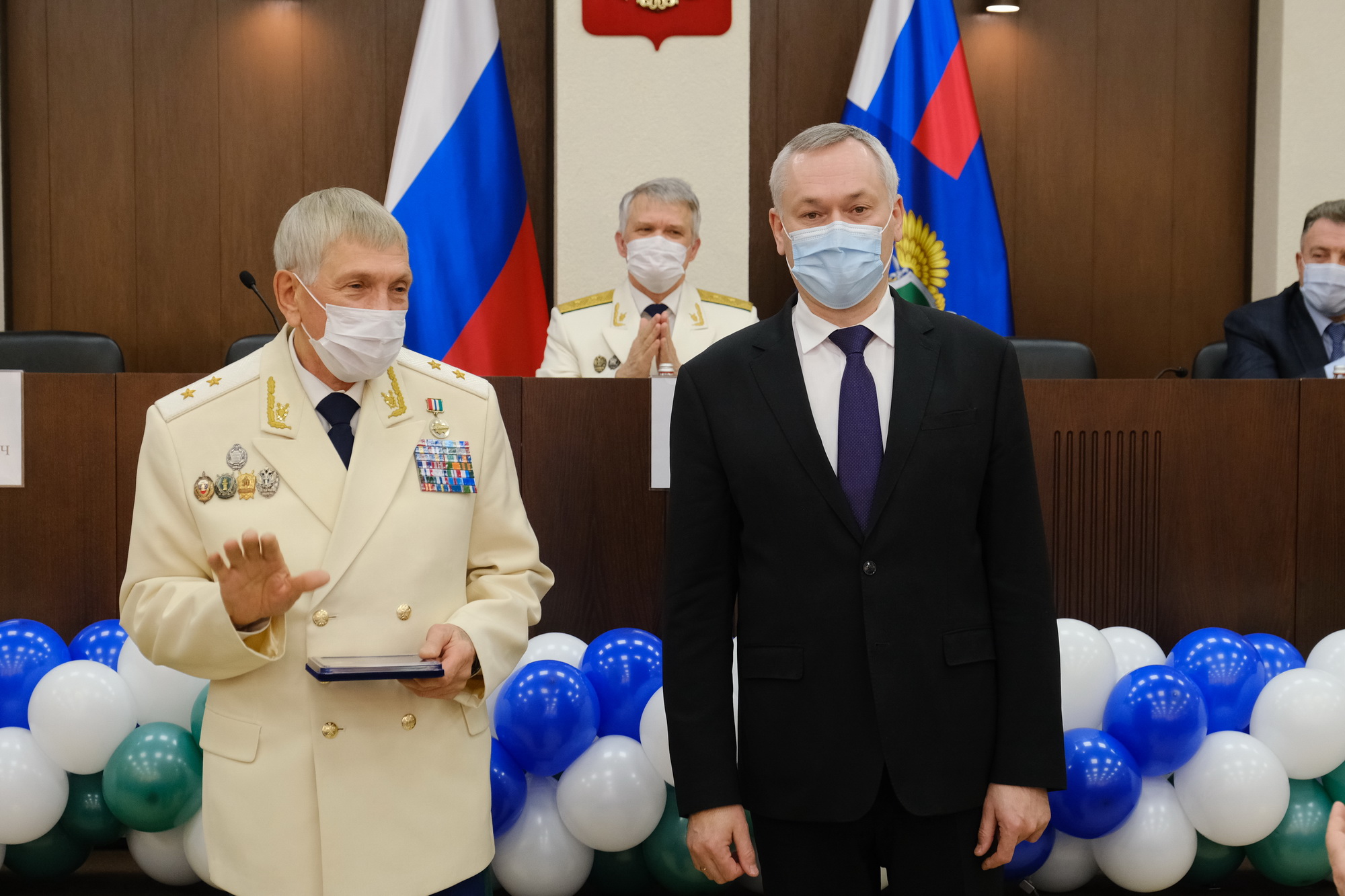 Андрей Травников в присутствии коллектива прокуратуры области вручил нагрудный знак «Заслуженный юрист Новосибирской области» ветерану прокуратуры, прокурору Новосибирской области в отставке Евгению Федоровичу Овчинникову. Он отметил его заслуги в укреплении законности и правопорядка, защите прав и законных интересов граждан, повышении правовой культуры в обществе.