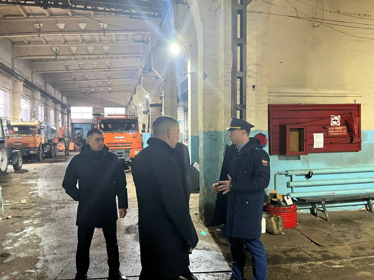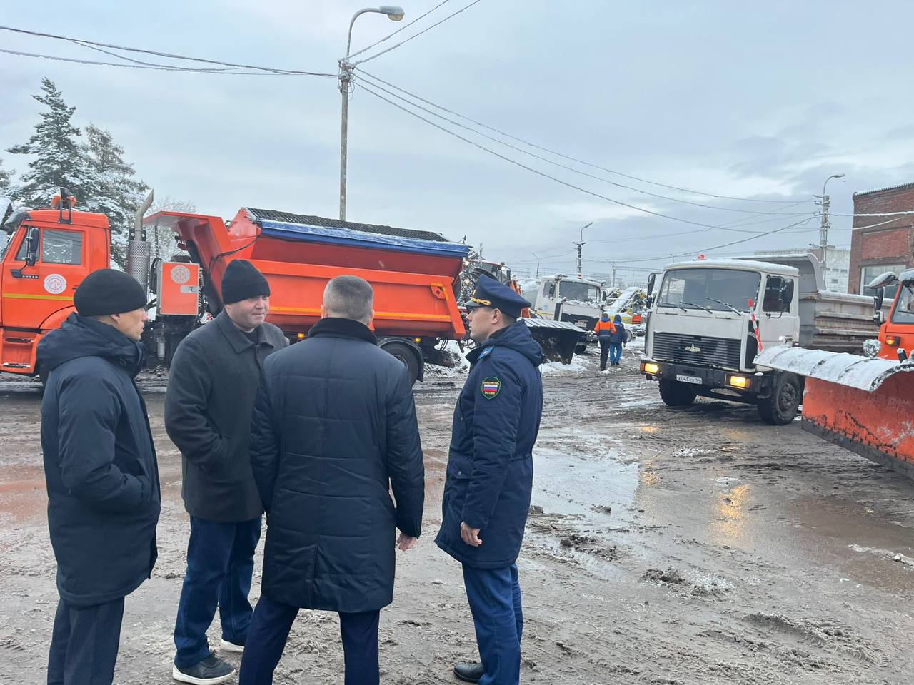 В ходе проверки дана оценка состоянию автопарка, наличию необходимых запасных частей, материалов и топлива, противогололедных реагентов и готовности персонала к работе в условиях снегопадов и пониженных температур.