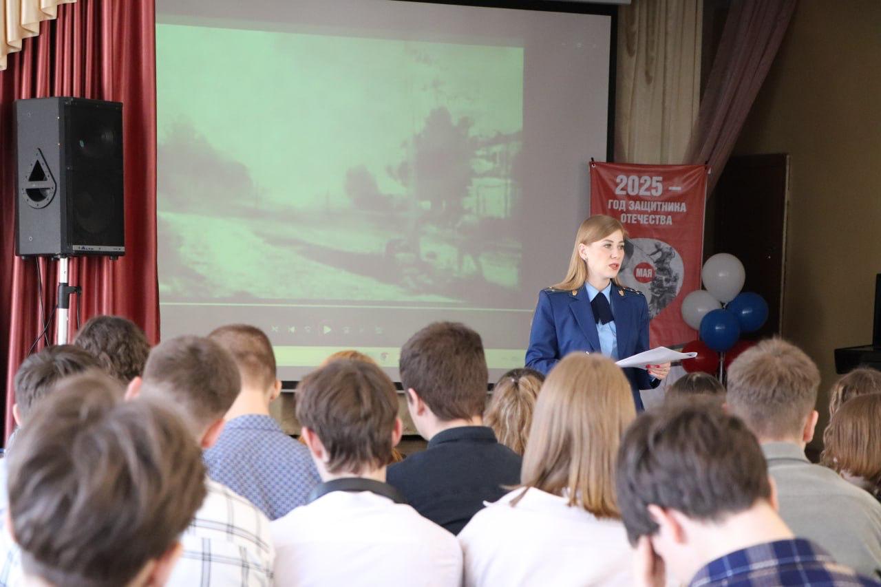 В преддверии празднования 80-й годовщины Победы в Великой Отечественной войне 1941-1945 г.г. работниками прокуратуры Железнодорожного района города Орла проведена лекция по военно-патриотическому воспитанию с учащимися 9-10 классов средней общеобразовательной школы № 11 им. Г.М. Пясецкого и школы № 7 имени Н.В. Сиротинина.