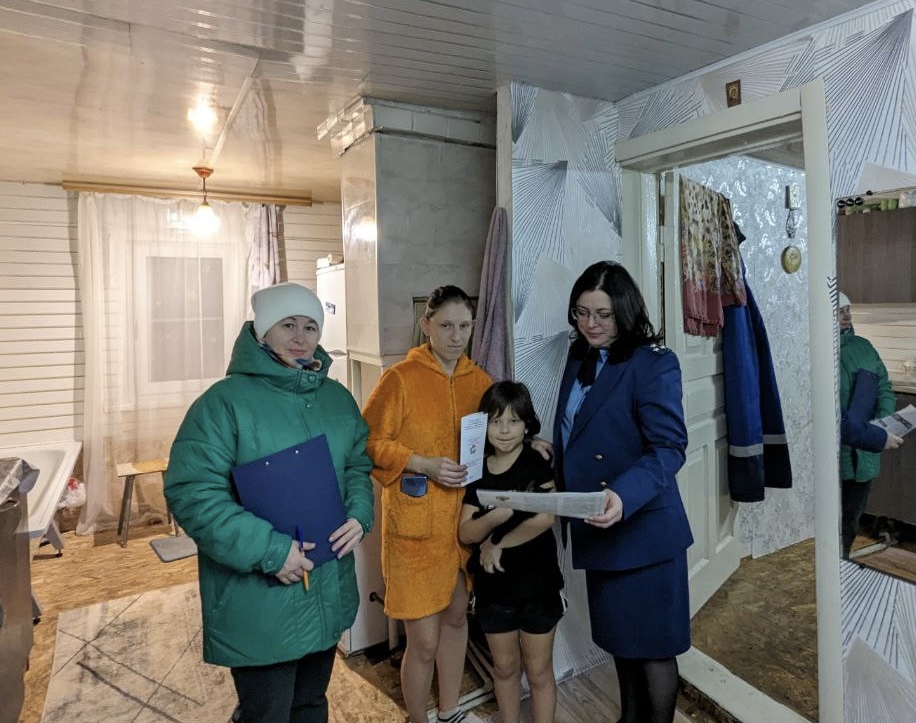 Работники прокуратуры совместно с сотрудниками региональных служб МВД, МЧС, органами опеки и попечительства, социальной защиты населения посещают многодетные семьи, семьи, находящиеся в трудной жизненной ситуациии и социально опасном положении.