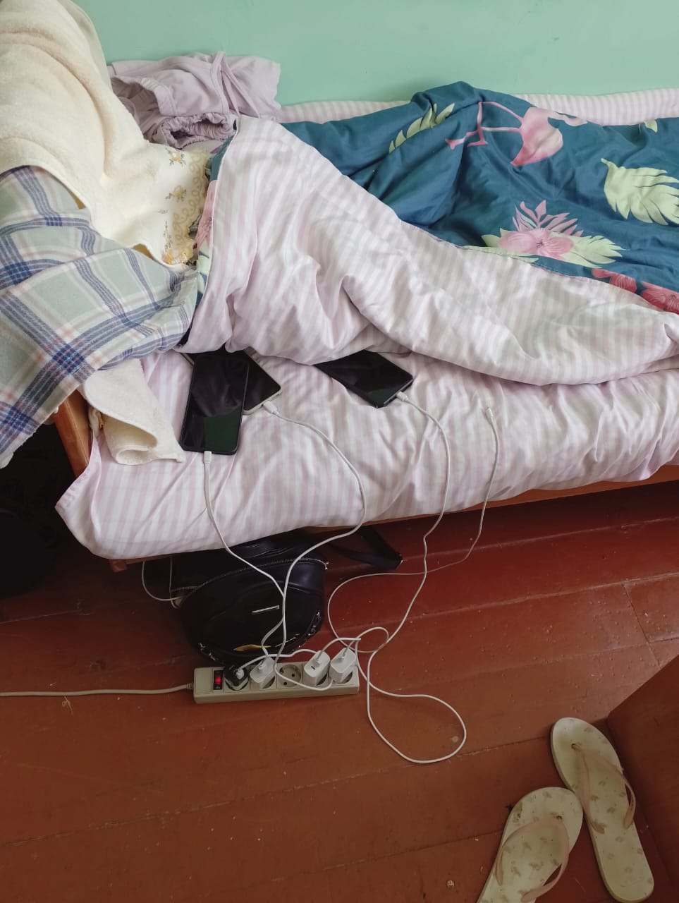 В нарушение требований пожарной безопасности в спальных комнатах и помещениях овощехранилища эксплуатировались светильники со снятыми колпаками (рассеивателями), в комнате вожатых находились подключенные к электросети телефонные зарядные устройства.