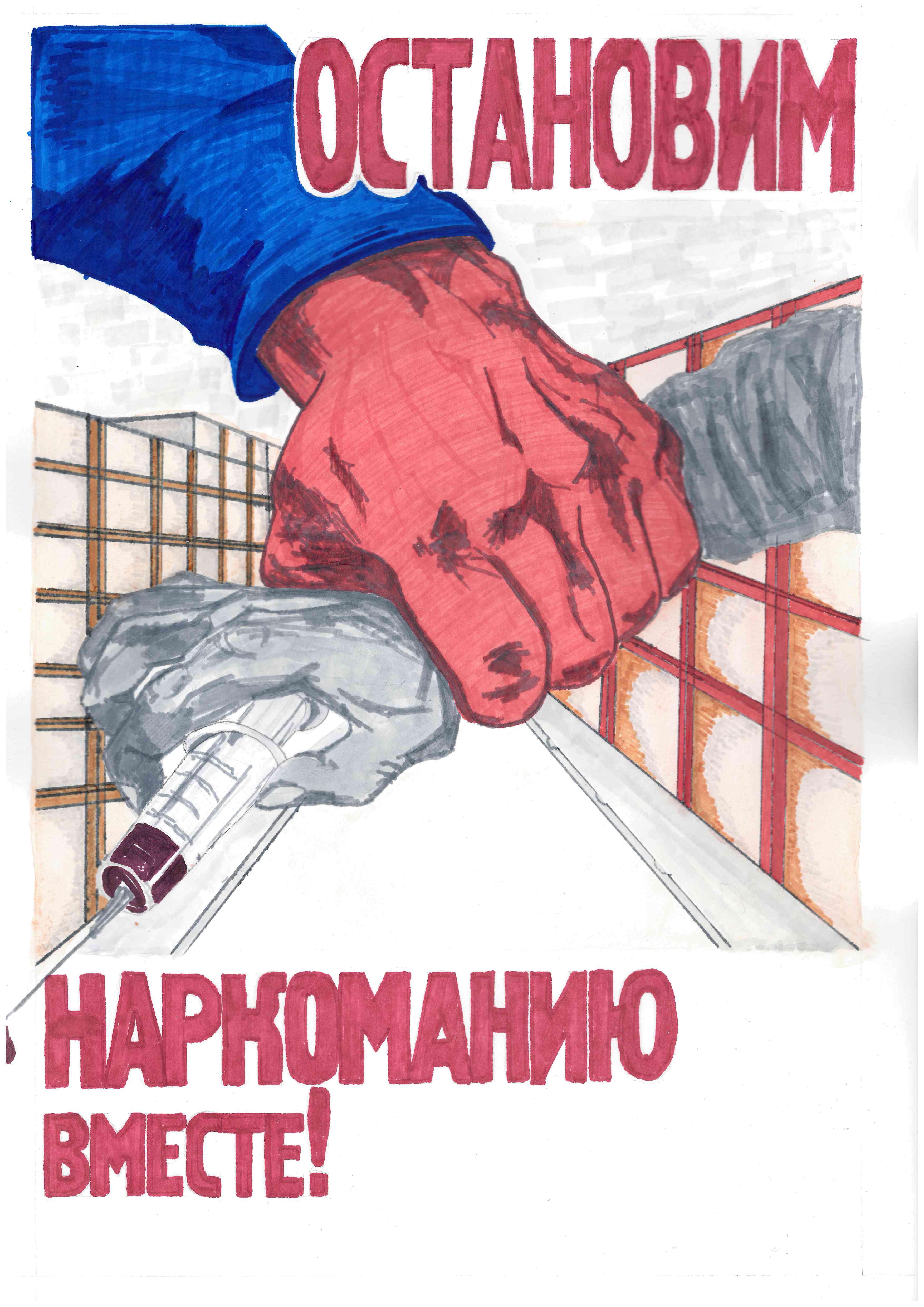 III место: коллектив авторов плаката «Остановим наркоманию» - студенты ГАПОУ ПО «Пензенский колледж архитектуры и строительства» Салават Мясоутов и Артём Осипов.