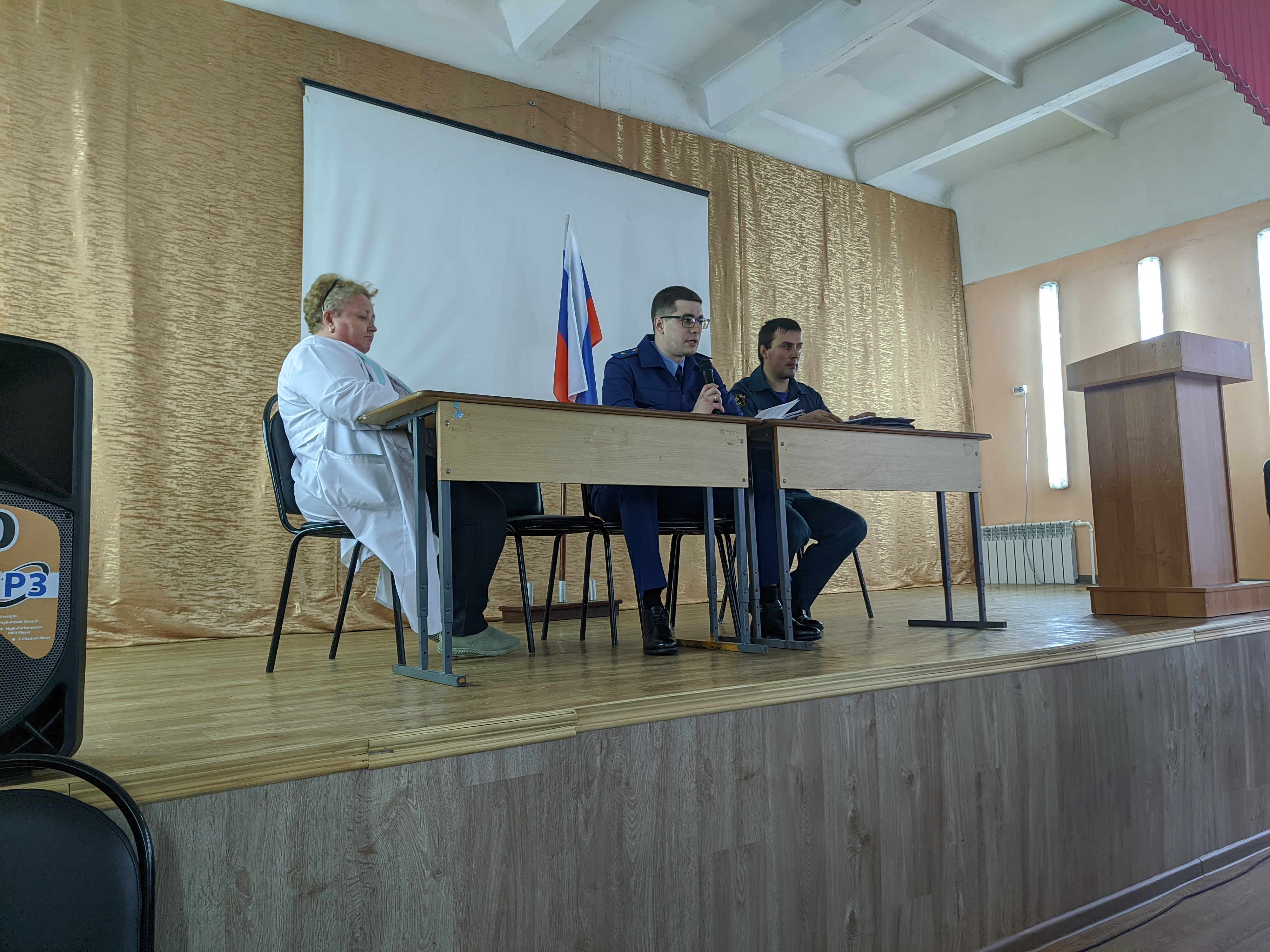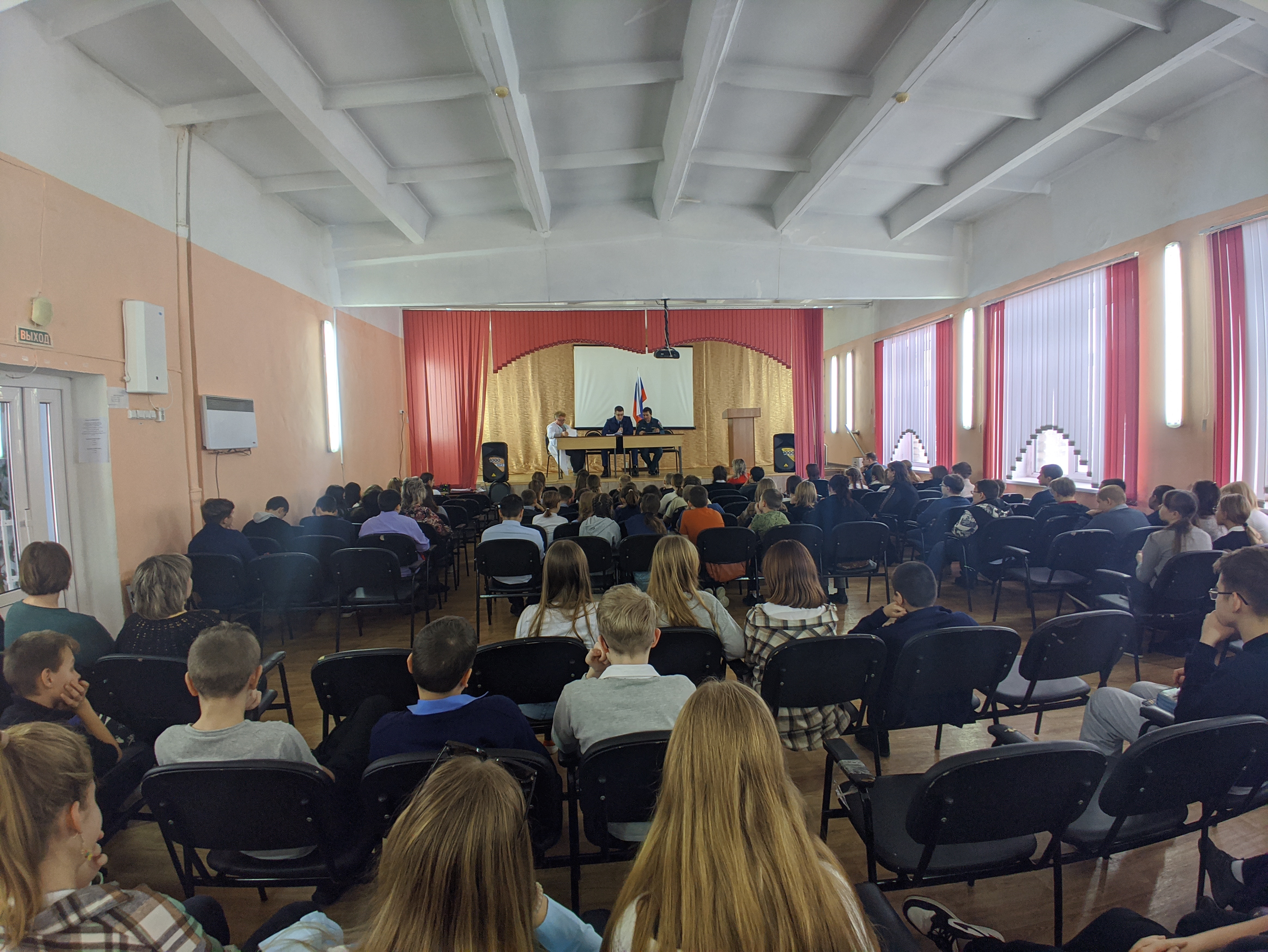 По завершении личного приема прокурор района совместно с представителями МЧС России по Пензенской области и Вадинской участковой больницы провел лекцию учащимся 5-7 классов МОУ СОШ с. Вадинск на тему: «Правила поведения в осенне-зимний период».