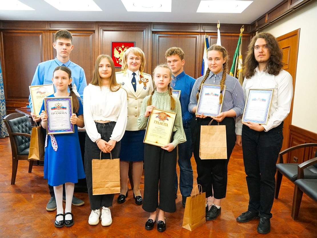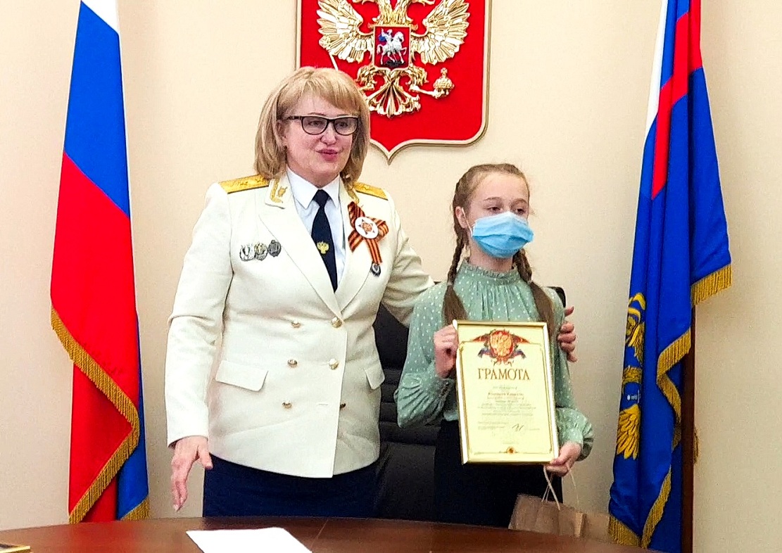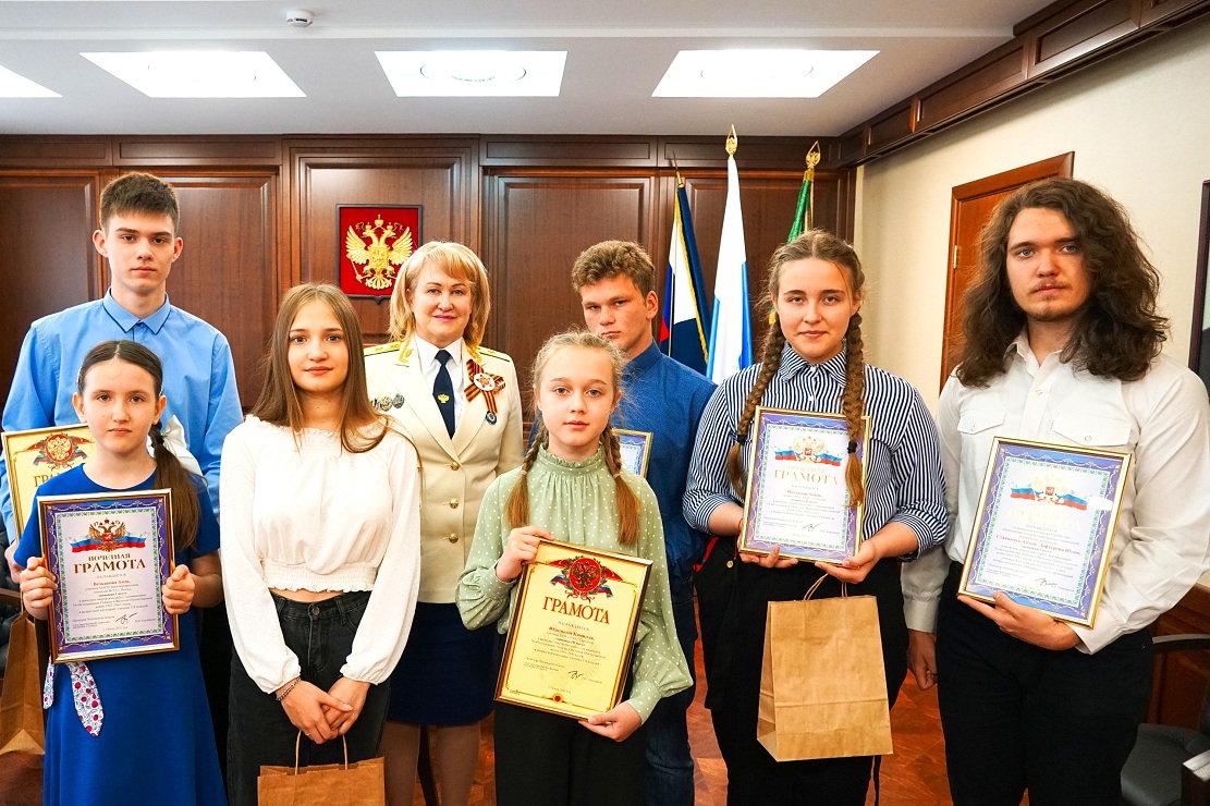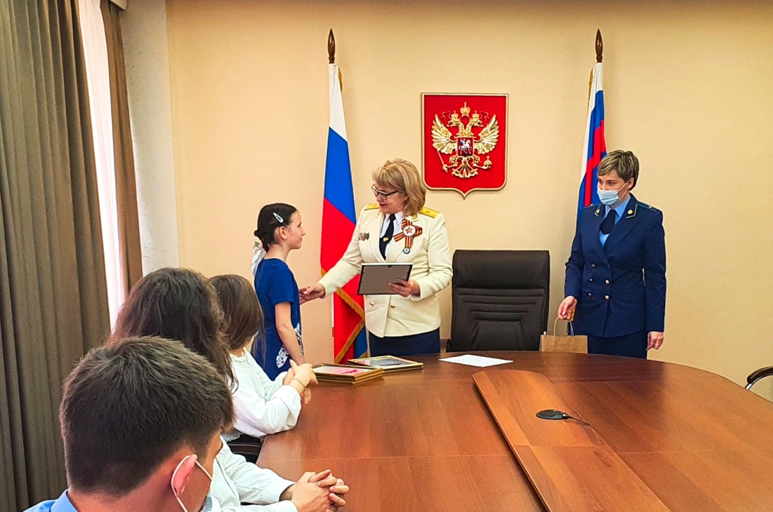 Ребята с родителями и работниками прокуратуры просмотрели видеоролики всех победителей конкурса. После чего прокурор области Наталья Канцерова в торжественной обстановке вручила им грамоты и подарки.