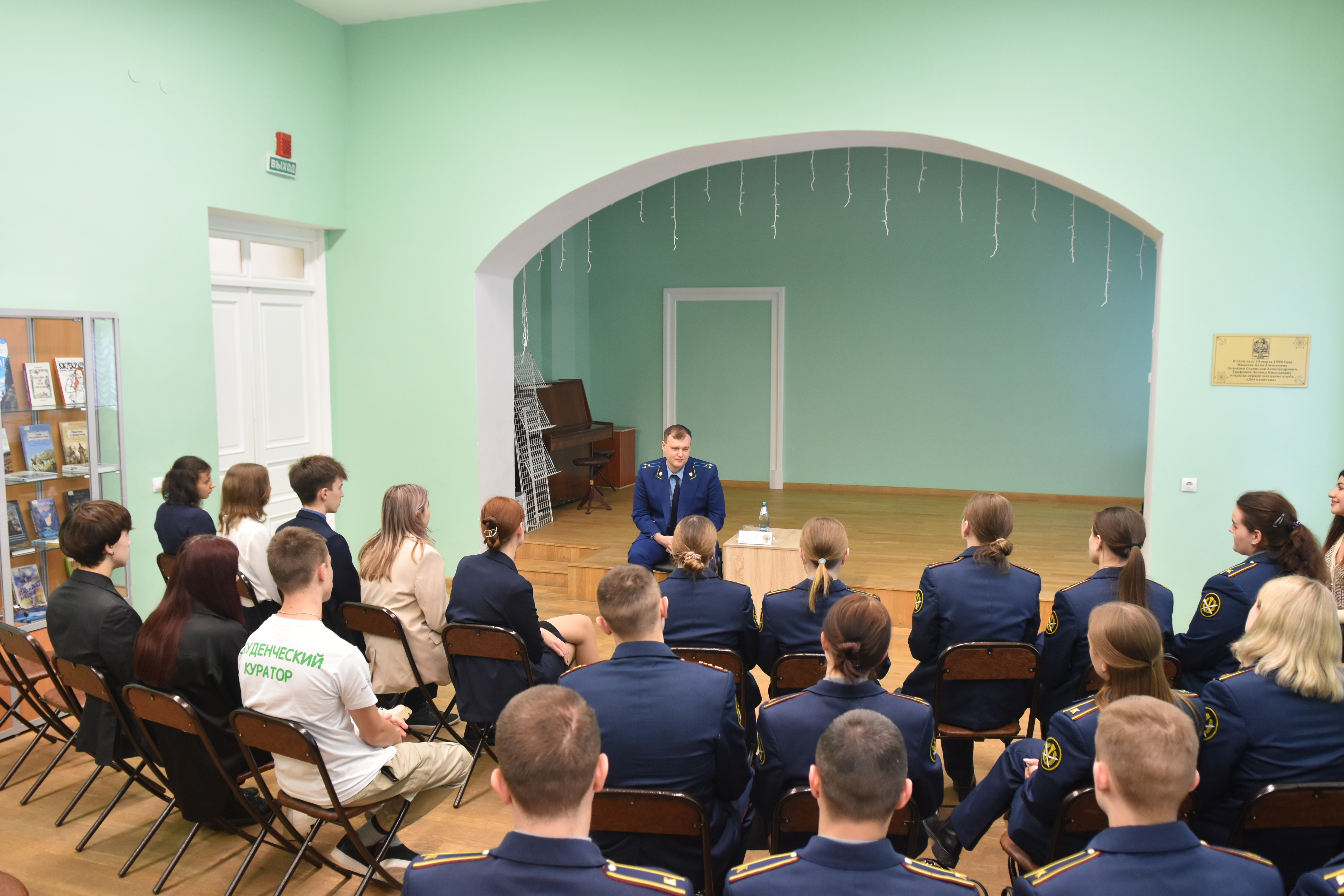25 января 2024 года в библиотеке имени В. А. Каверина прокурор Псковской области Андрей Мошков провел встречу со студентами ПсковГУ и курсантами Псковского филиала Университета ФСИН России.