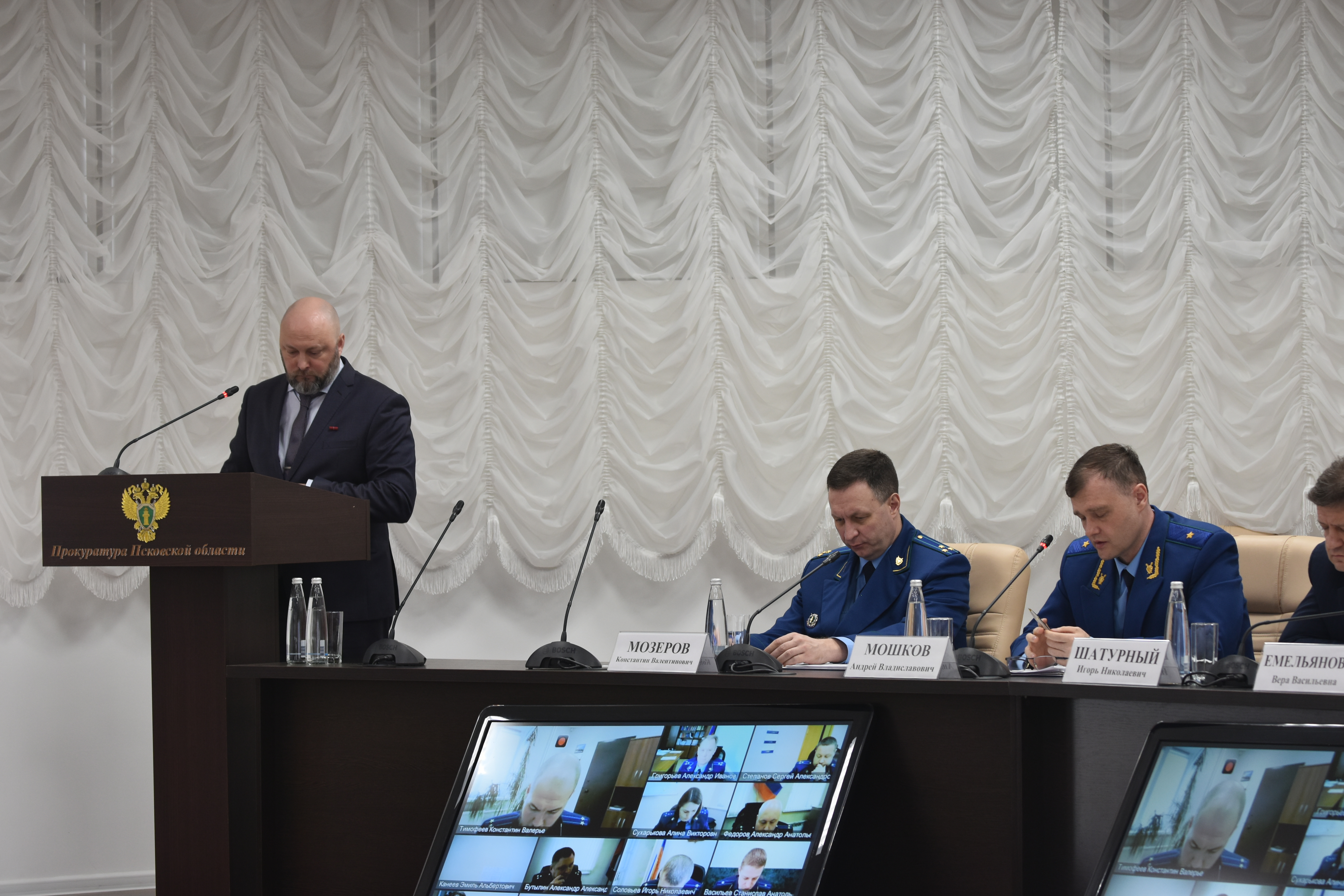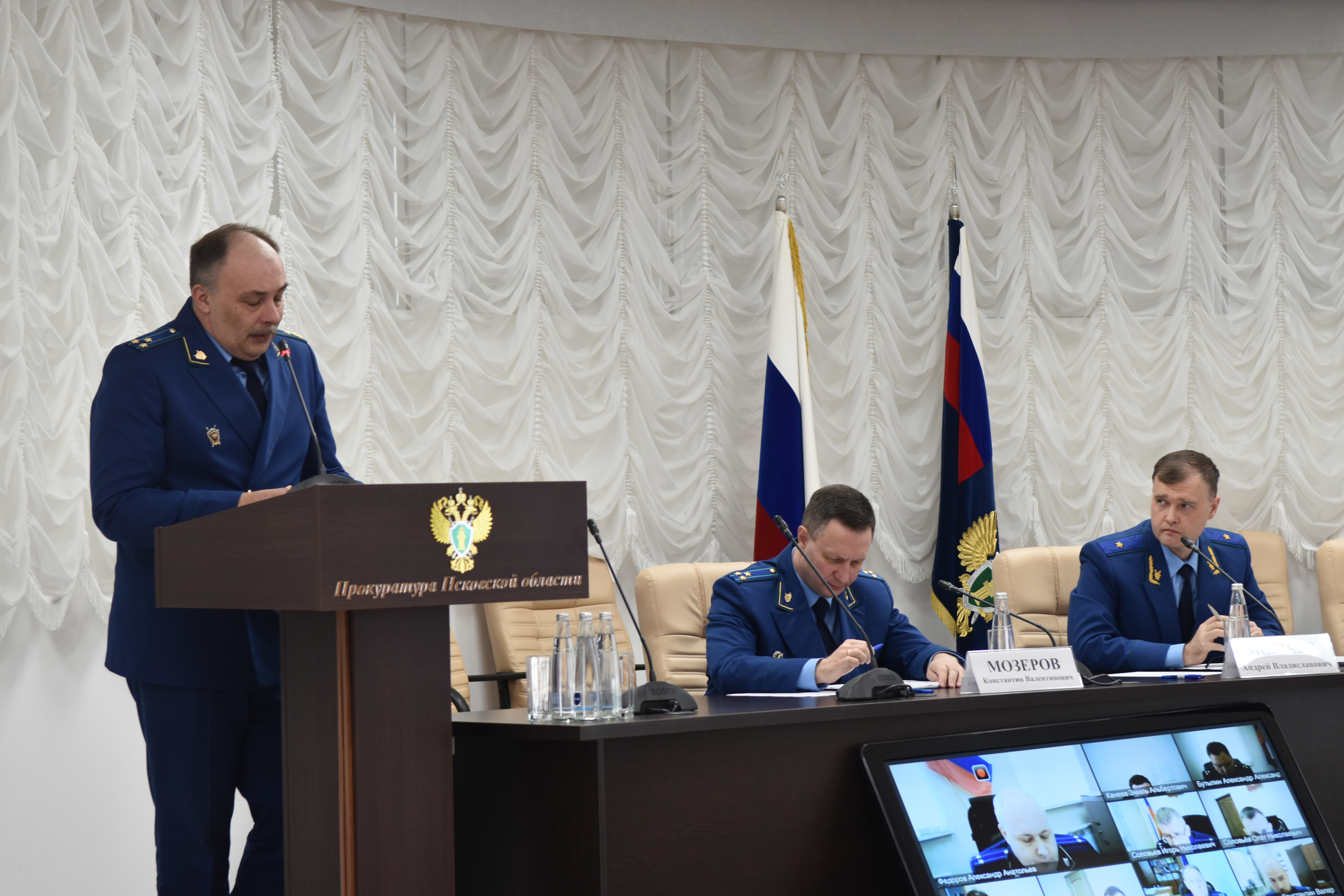 Под председательством прокурора области Андрея Мошкова проведено расширенное заседание коллегии. В работе совещания приняли участие первый заместитель Губернатора Псковской области Емельянова В.В., заместитель Губернатора Псковской области Шатурный И.Н., врио председателя Комитета по строительству и жилищно-коммунальному хозяйству Псковской области Григорьева К.Э., председатель Комитета по транспорту и дорожному хозяйству Псковской области Стармолотов С.Я., заместитель председателя Комитета по образованию Псковской области Барсукова А.В. Участниками коллегии обсуждены результаты анализа состояния законности и проведенных проверок исполнения законодательства при реализации мероприятий национальных проектов, федеральных целевых программ, государственных программ Псковской области и муниципальных программ. Псковская область принимает активное участие в реализации поставленных Президентом Российской Федерации целей в рамках исполнения мероприятий документов стратегического планирования. В текущем году в Псковской области реализуются 10 национальных проектов с общим объемом финансирования более 10 млрд. руб. Отмечены проблемные вопросы, на которые следует обратить внимание при обеспечении надзорного сопровождения реализации программных мероприятий. По итогам коллегии выработаны конкретные меры, направленные на совершенствование и активизацию деятельности по защите интересов граждан, общества и государства.