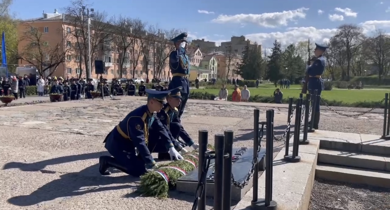 Собравшиеся почтили память героев минутой молчания, к Могиле Неизвестного солдата возложили гирлянду воинской славы и цветы.