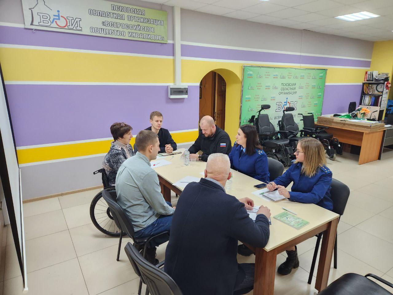 Прокуратурой области проведена рабочая встреча по вопросам соблюдения требований законодательства о социальной защите инвалидов, в которой приняли участие представители Псковской областной организации общероссийской общественной организации «Всероссийское общество инвалидов», включая председателя общества - Борисенкову Марину Эдуардовну, а также глава города Пскова Ёлкин Борис Андреевич и представители администрации города Пскова.