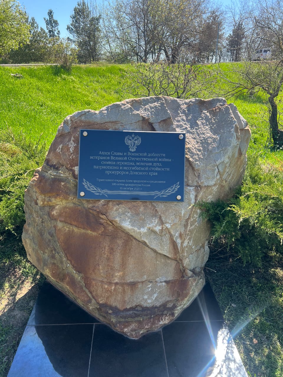 Работники прокуратуры области ежегодно высаживают свои именные деревья. А на памятном камне нанесена надпись о том, что мемориальный объект посвящен прокурорским работникам-фронтовикам и символизирует величие духа и несгибаемой стойкости.
