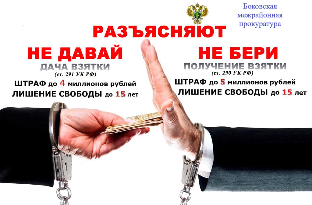 Памятка "Ответственность за дачу и получение взятки" (Боковская межрайонная прокуратура)