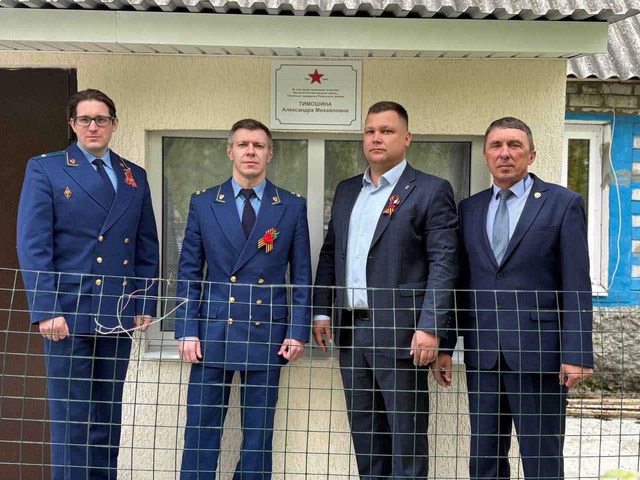 Прокурор Рязанского района Александр Аллахвердов совместно с Рязанским транспортным прокурором Юрием Ворониным, главой районной администрации Борисом Ясинским и председателем районной Думы Валерием Ломовым поздравили ветерана Тимошину Александру Михайловну с предстоящим праздником - Днем Победы в Великой Отечественной войне. В домашней обстановке Александре Михайловне вручили памятные подарки, а также удостоверение почетного гражданина Рязанского района, выразили слова благодарности за вклад в победу над фашизмом.