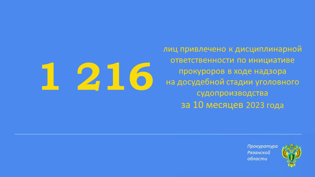 1 216 лиц привлечено к дисциплинарной ответственности по инициативе прокуроров в ходе надзора на досудебной стадии уголовного судопроизводства за 10 месяцев 2023 года
