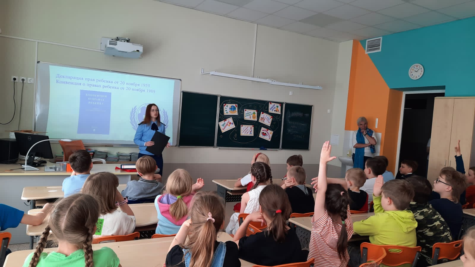 В ходе встреч помощники прокурора района Анастасия Лисова и Екатерина Митронина рассказали учащимся о днях воинской славы и памятных датах России, о сражениях и героях Великой Отечественной войны.