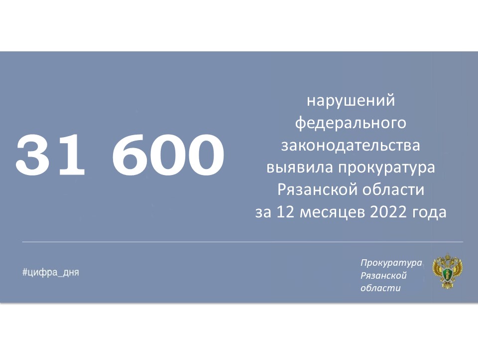 #ЦИФРА_ДНЯ:Основные результаты надзорной деятельности органов прокуратуры Рязанской области за январь-март 2023 года
