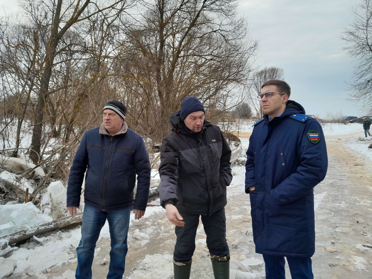 В ходе проверки с выездом на место прокуратурой района осуществлена координация действий всех служб на случай возникновения чрезвычайных ситуаций в д. Дмитриевка, в том числе осуществлен контроль за ходом проведения работ по расчистке подтопленного моста от ледяных образований.