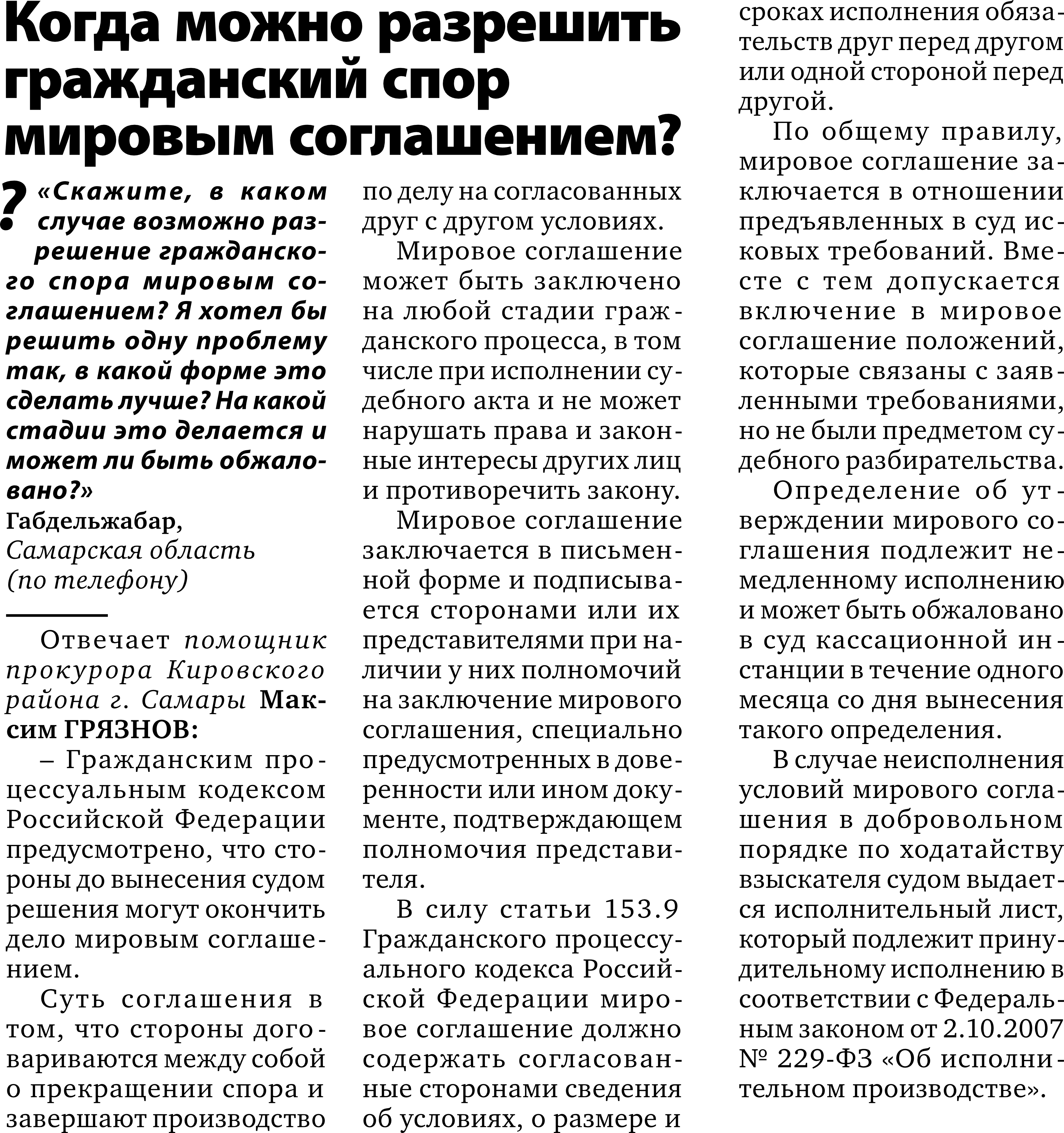 Прокуратура Кировского района г. Самары разъясняет: "Когда можно разрешить гражданский спор мировым соглашением?"