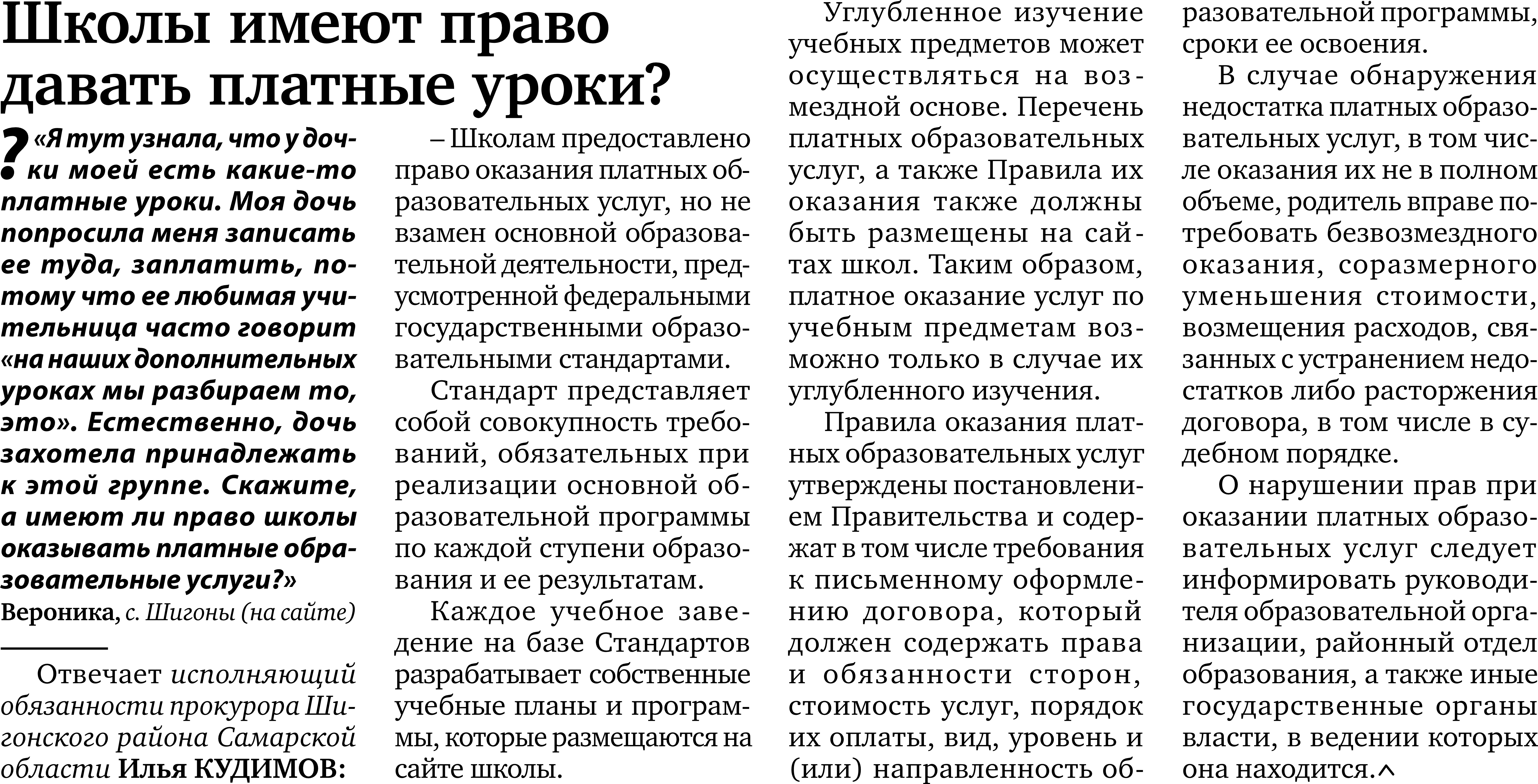 Прокуратура Шигонского района: Школы имеют право давать платные уроки?