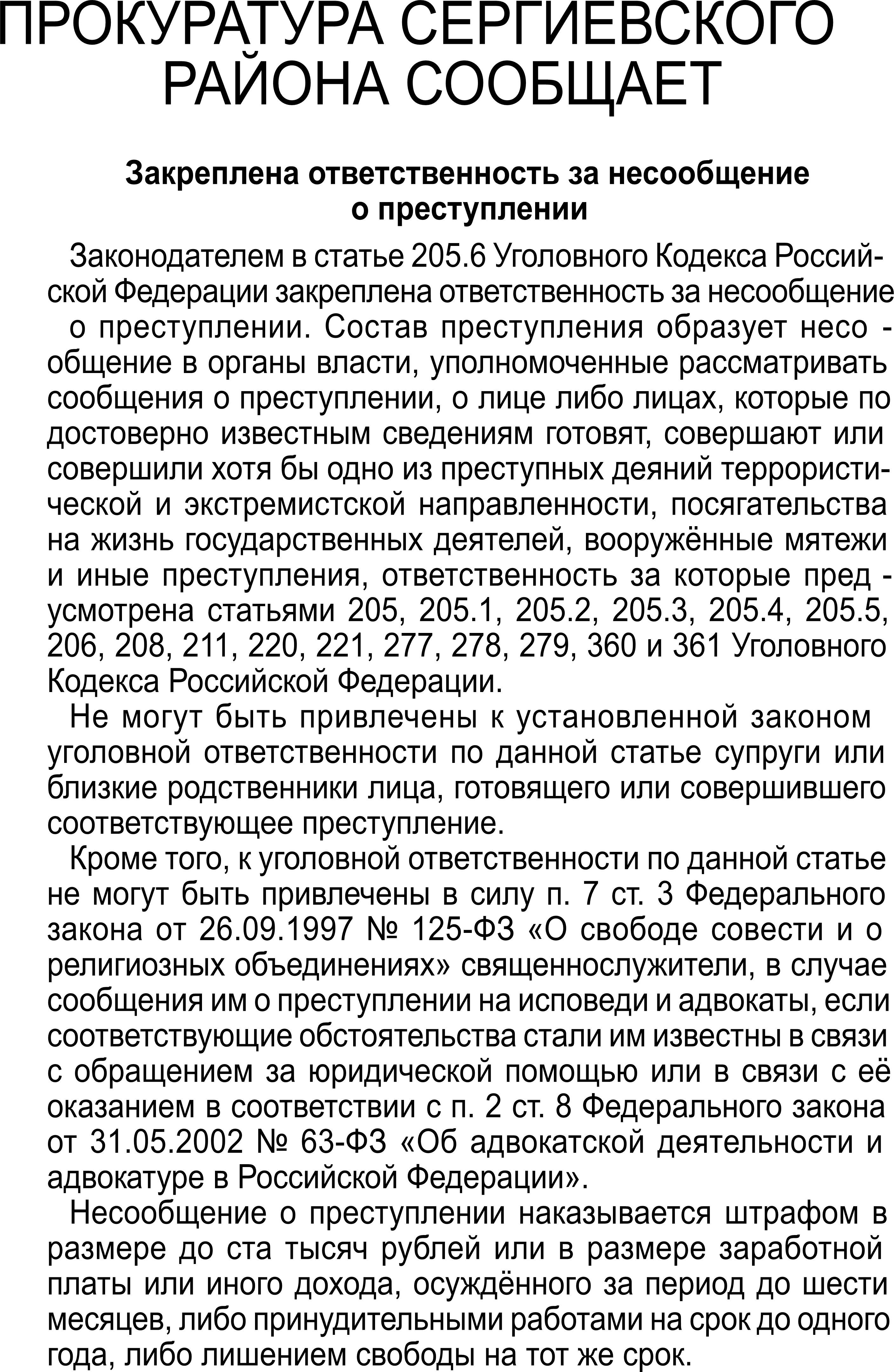 Прокуратура Сергиевского района разъясняет: "Знал о совершении преступления и промолчал? Ответишь по всей строгости. О чем речь?"