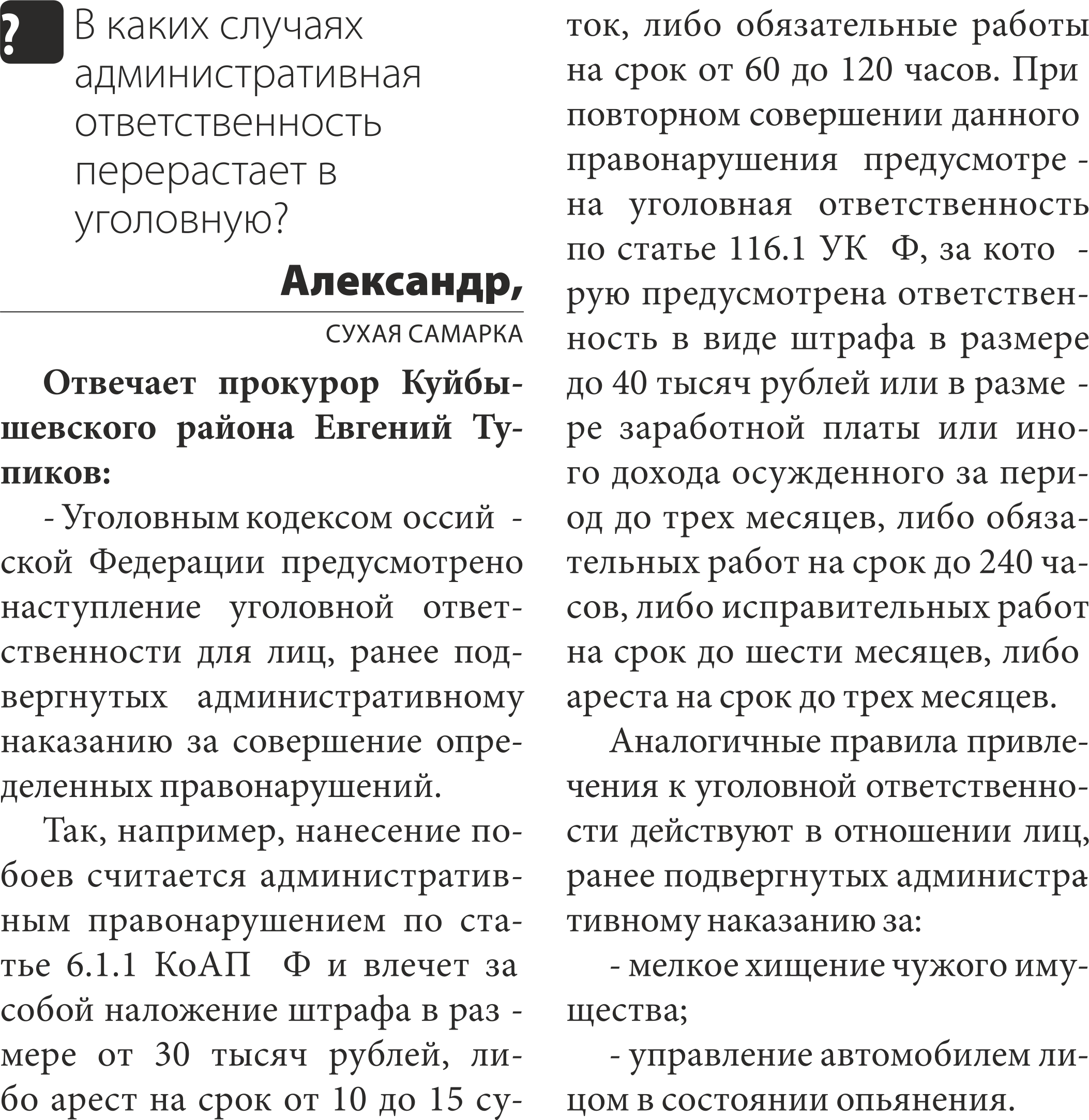 Прокуратура Куйбышевского района г. Самары разъясняет: В каких случаях административная ответственность перерастает в уголовную?