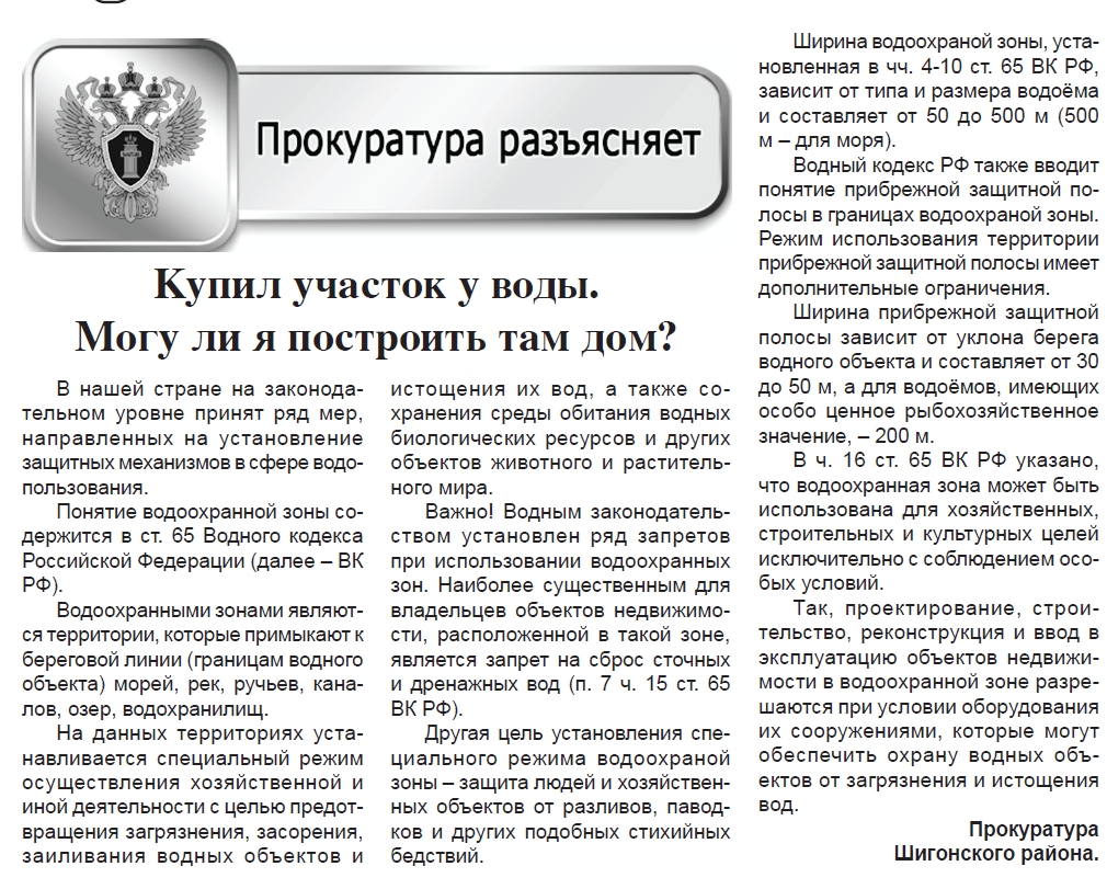 Прокуратура Шигонского района разъясняет: Купил участок у воды, могу ли построить там дом?