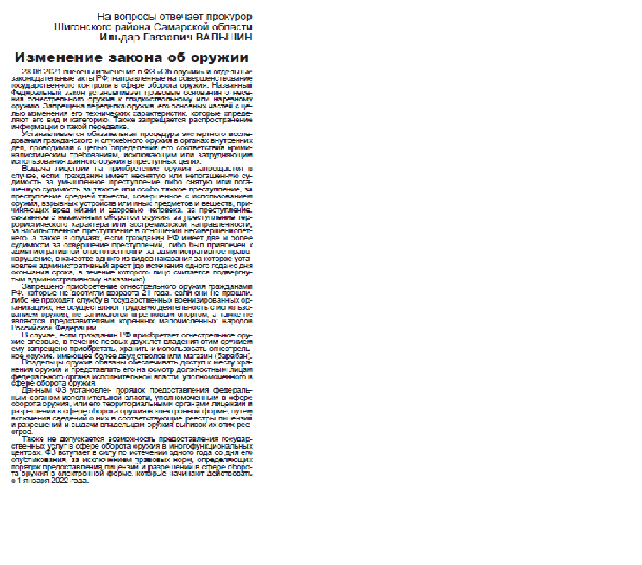Прокуратура Шигонского района разъясняет: "К вопросу об обороте оружия"
