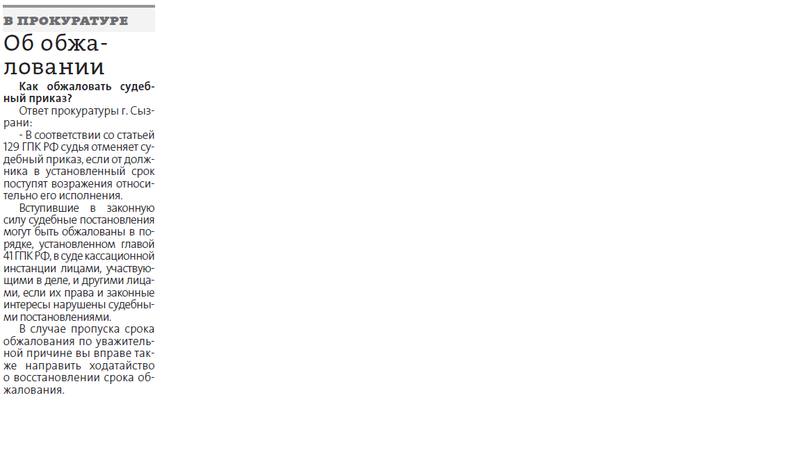 Прокуратура г. Сызрани разъясняет: "Как обжаловать судебный приказ"