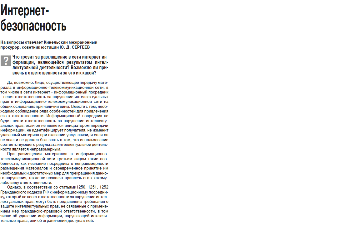 Кинельская межрайонная прокуратура: "Интернет-безопасность"