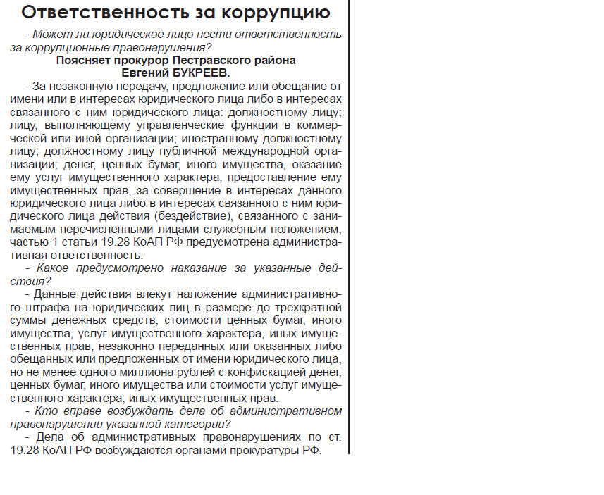 Прокуратура Пестравского района разъясняет: "Может ли юридическое лицо нести ответственность за коррупционные правонарушения?"