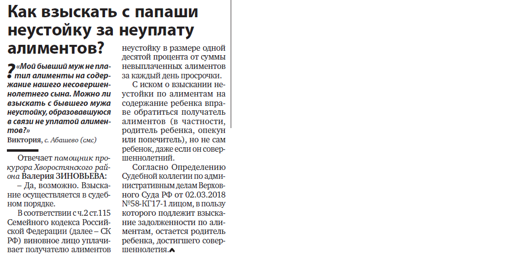 Прокуратура Хворостянского района разъясняет: "Как взыскать неустойку с отца?"