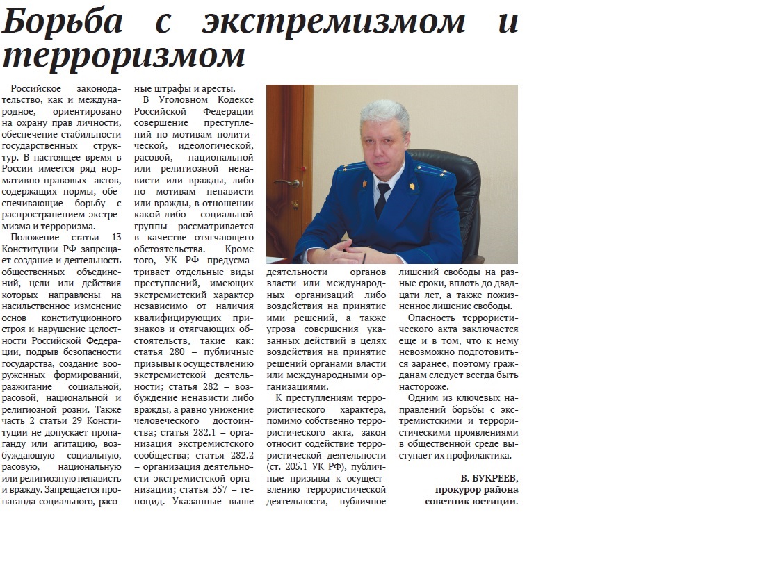 Прокуратура Пестравского района разъясняет: "Борьба с экстремизмом и терроризмом"