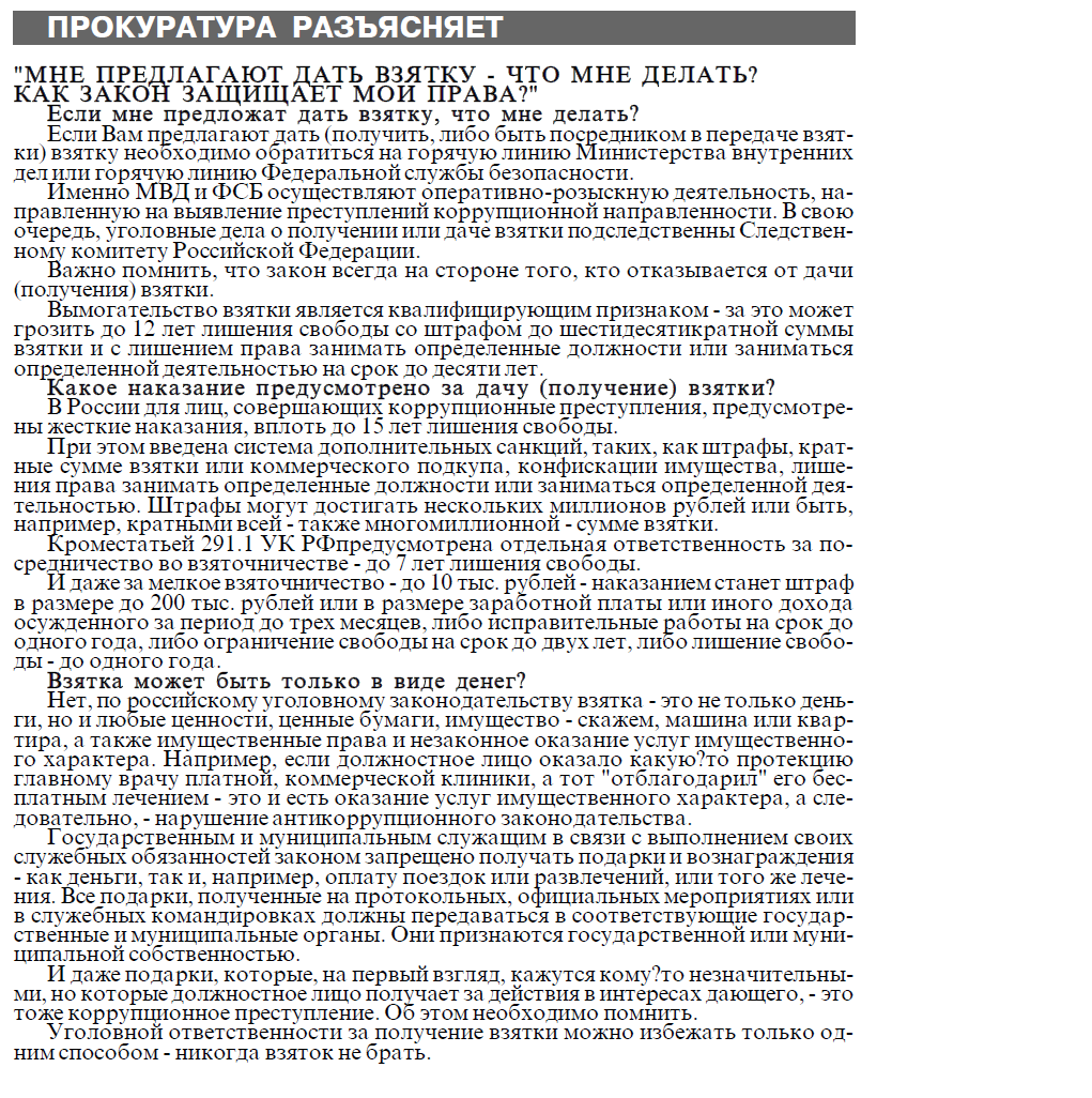 Прокуратура Камышлинского района разъясняет: "Что делать, в случае вымогательства взятки?"